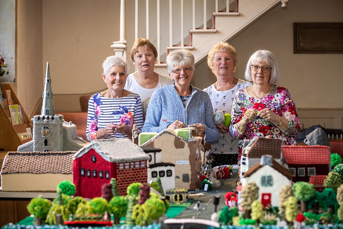 A knitted recreation of the St James' Church in Thrapston, Northamptonshire and the Town Council building. Photo: VCG figcaption >