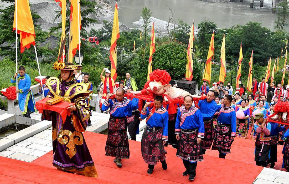 To commemorate Dayu’s birthday, the celebration activities and culture and tourism festival was held in Miansi town of Wenchuan, Southwest China’s Sichuan Province on July 8, 2019. Dayu is a legendary hero who made a great contribution to flood control and resettled a large number of homeless people in ancient China.