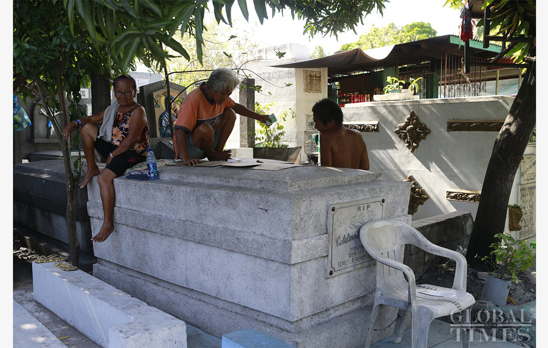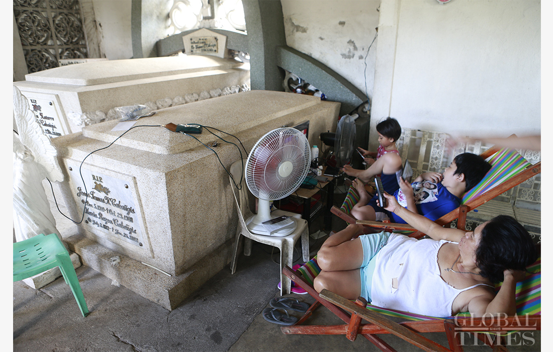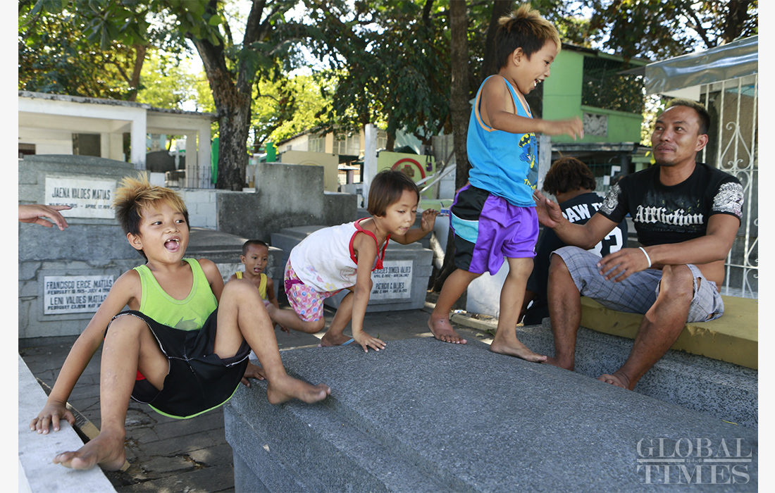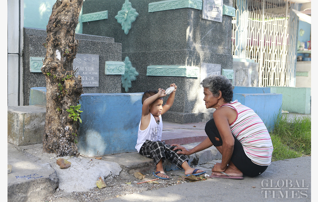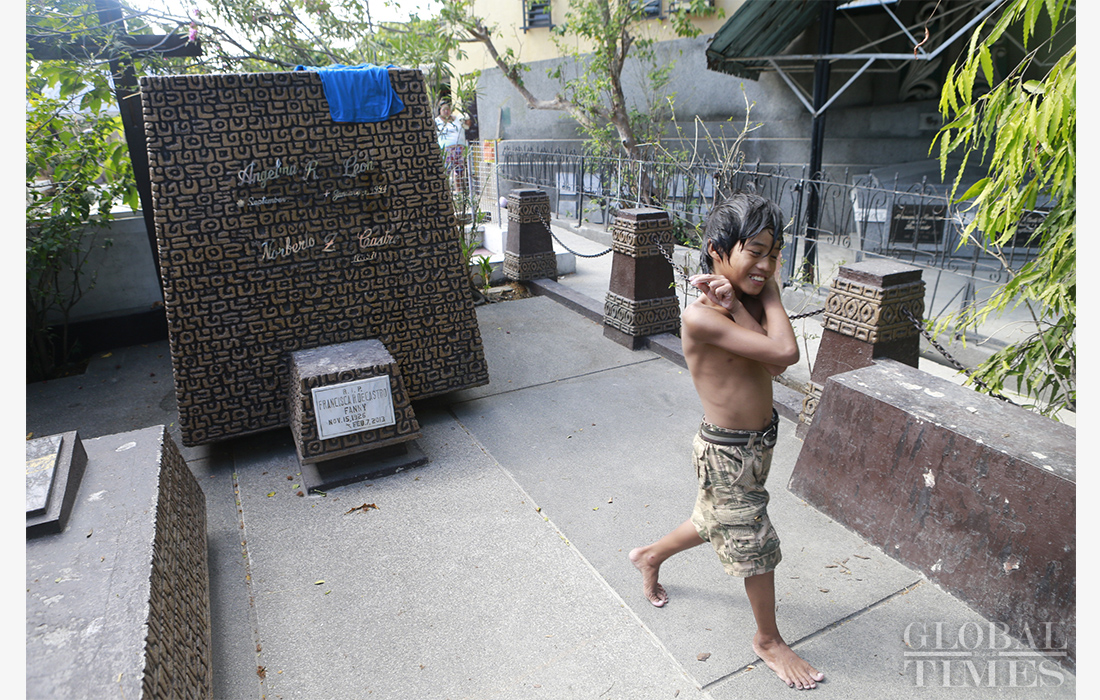 In Manila, the capital city of the Philippines, thousands of residents share homes with the dead. They mostly live in Cementerio del Norte, a 54-hectare public cemetery in the northern part of the city. Most of the people there are vendors or taxi drivers too poor to afford normal housing, that have turned instead to making their homes in the graveyard, rent-free. Photos: Li Hao /GT