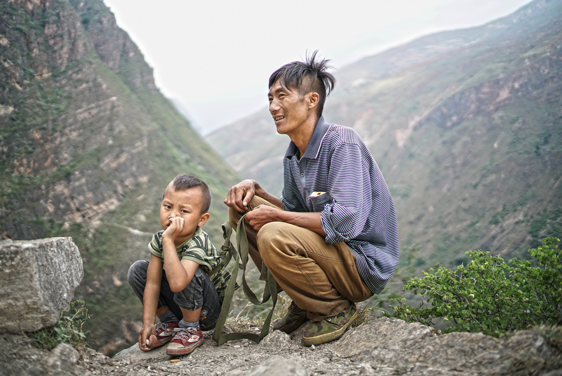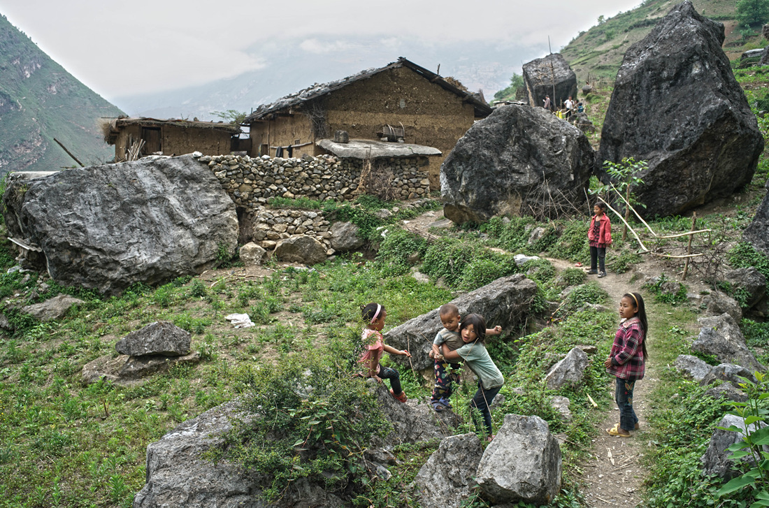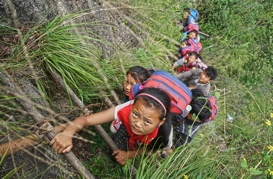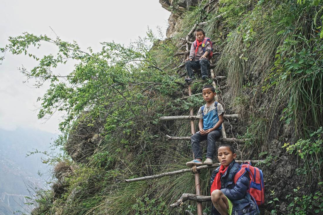 This treacherous trek has already cost several villagers their lives, and is the only point of access for 15 children aged from 6 to 15 that go to boarding school outside the village. Twice a month they come back home for the weekend, at which point they too must brave the many ladders under the watchful eye of their parents.