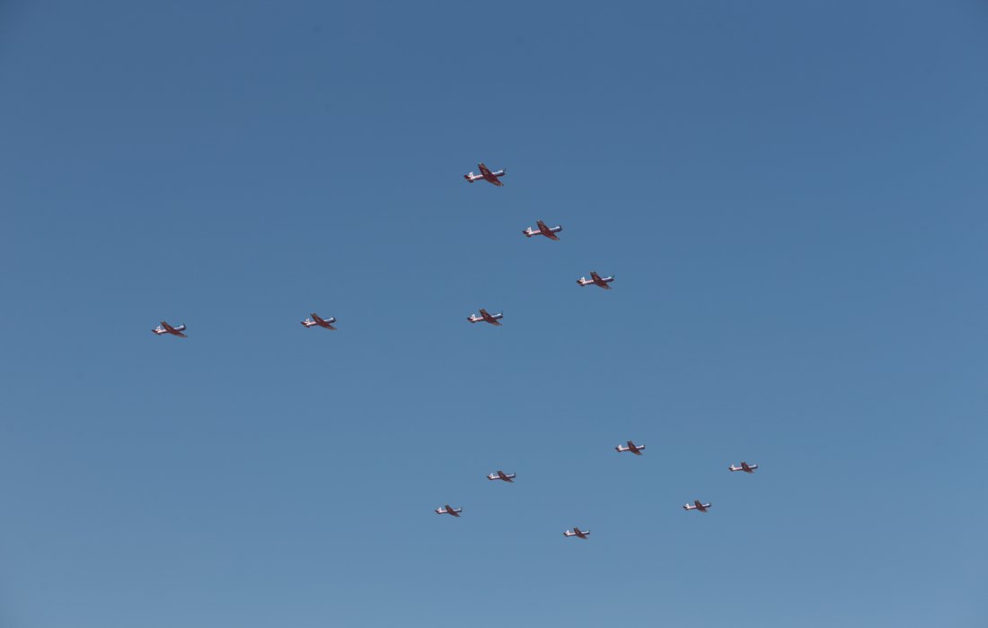 Flights create the digits “70” to celebrate the 70th anniversary of the Chinese Air Force at its open day event in Changchun, Northeast China’s Jilin Province on Thursday. Photo: VCG figcaption >