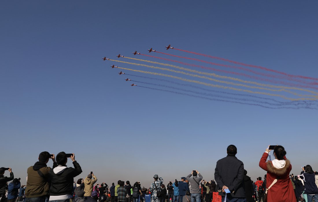 Visitors savor the magnificent flight performances during the Chinese Air Force's open day event in Changchun, Northeast China’s Jilin Province on Thursday. Photo: VCG figcaption >