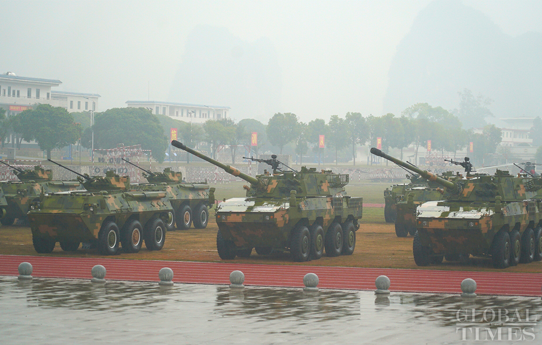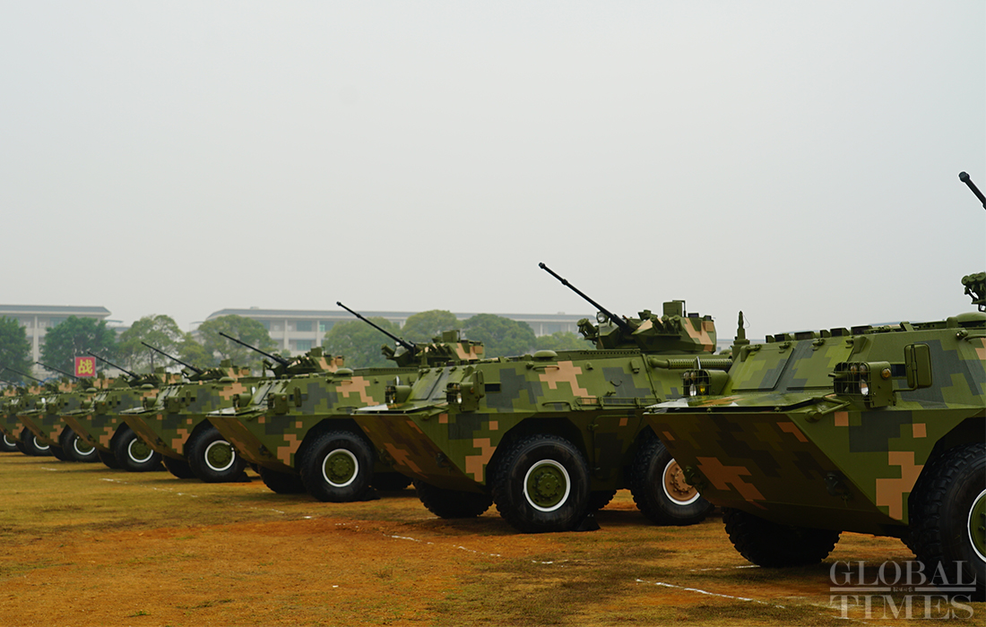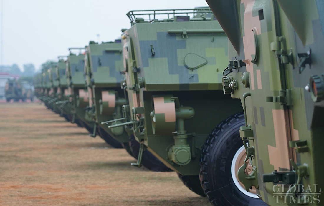 With a total of 10 airplanes, more than 60 items of armored equipment and over 800 soldiers from 18 countries, a field training exercise for the ADMM-Plus Experts’ Working Group on Counter Terrorism kicked off in Guilin, South China’s Guangxi Zhuang Autonomous Region on Wednesday. Photos: Zou Zhidong/GT