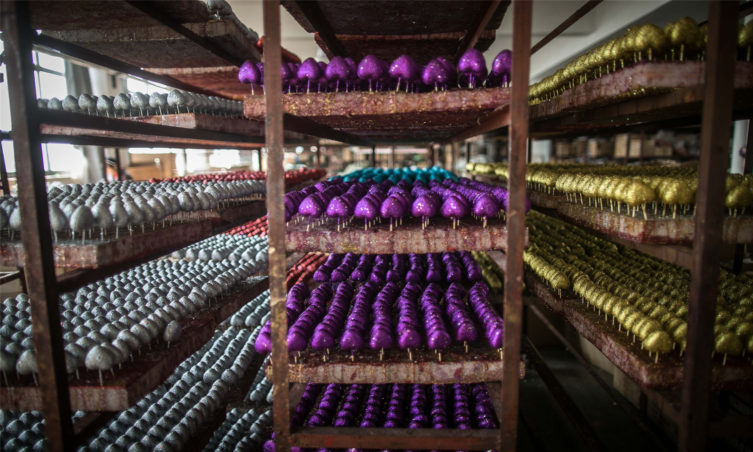 Colorful decorations are stored on shelves in the factory. Photo: Chen Ronghui