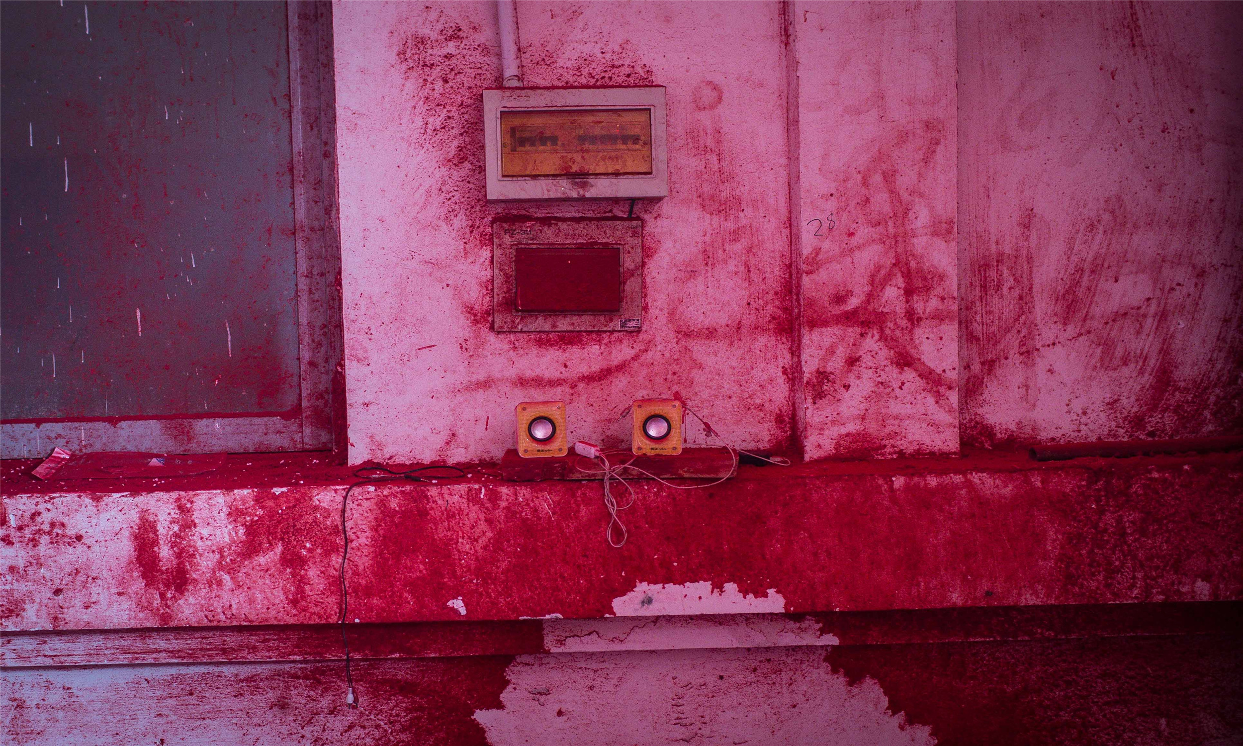 A pair of small speakers that Junior Wei uses to play music while working are, much like the walls, coated in the powder residue. Junior said music is his only pastime since he does not have a social networking account. Photo: Chen Ronghui