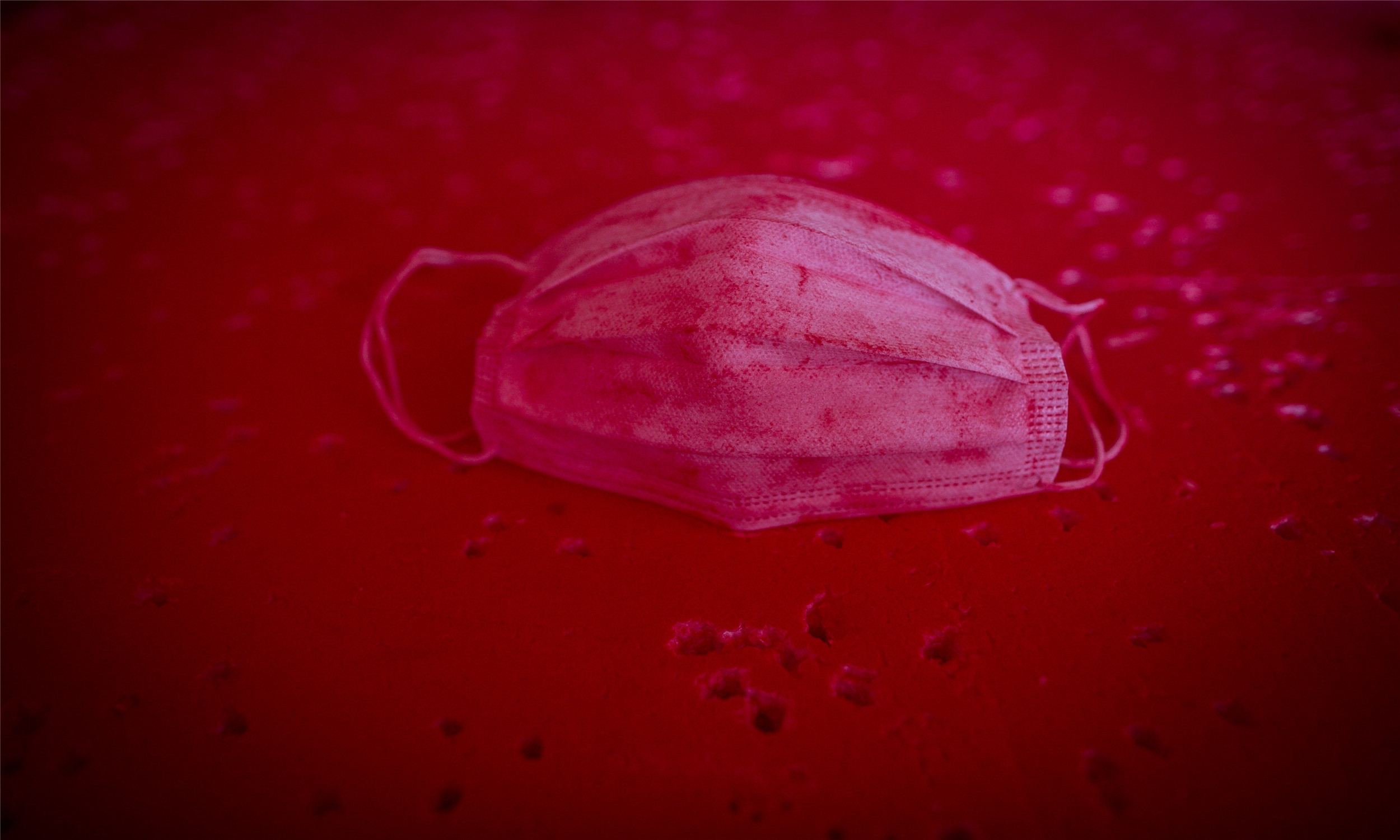A respirator mask covered in red dye is left at the workshop. Wei and his son each go through five masks while spraying more than 5,000 star decorations in a single day. "We are not so busy these days since there are only some scattered orders. The busiest days are before September," said Wei. The bulk orders for European markets are usually delivered before September. The factory receives small domestic orders beginning in December. Photo: Chen Ronghui