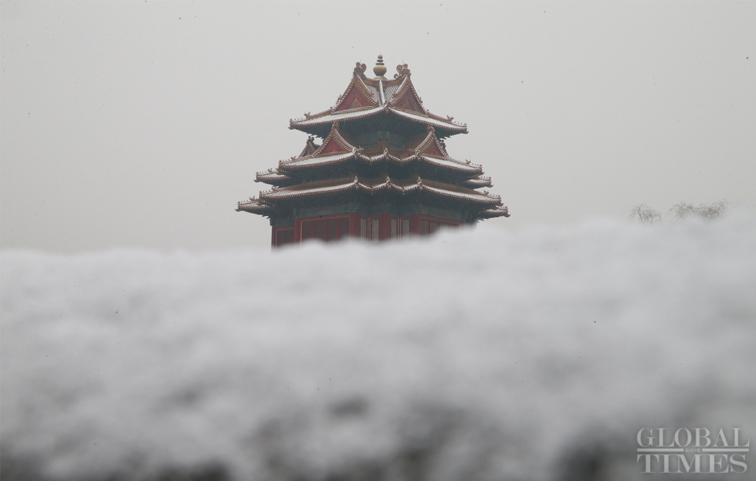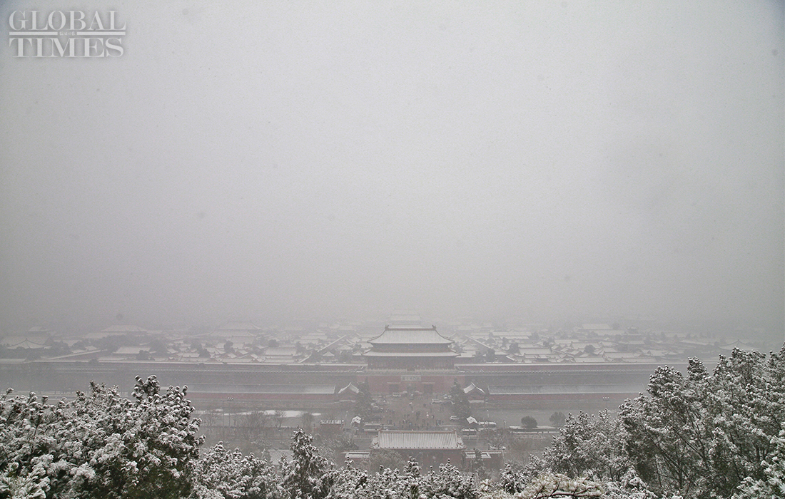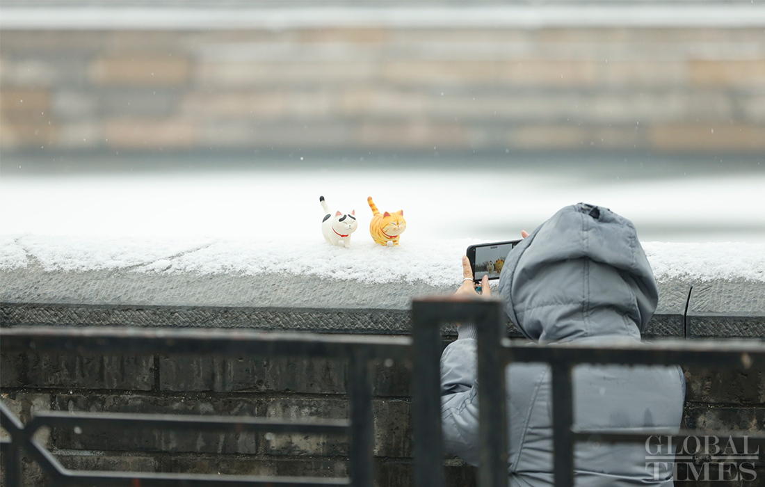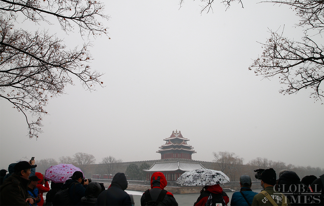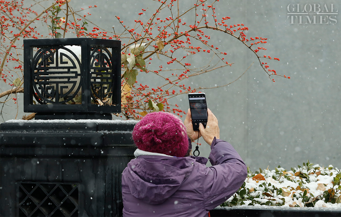 Beijing on Monday was blanketed in white after experiencing the second snow this winter. Visitors were seen enjoying the snow and taking pictures in Tiananmen Square, Jingshan Parkand other popular spots. The Beijing Meteorological Service issued a blue alert for blizzards on Sunday, the first blizzard alert for this winter. Photos: Li Hao/GT