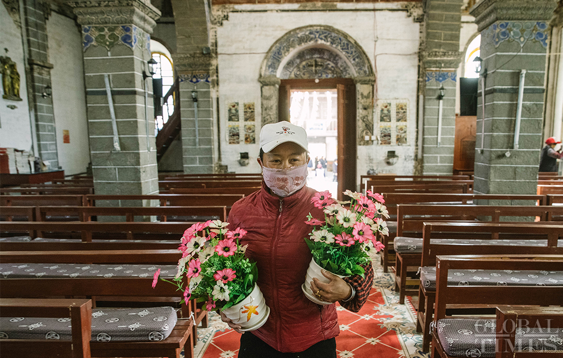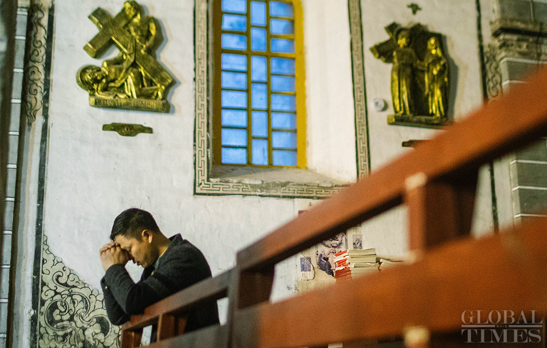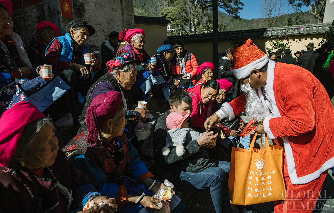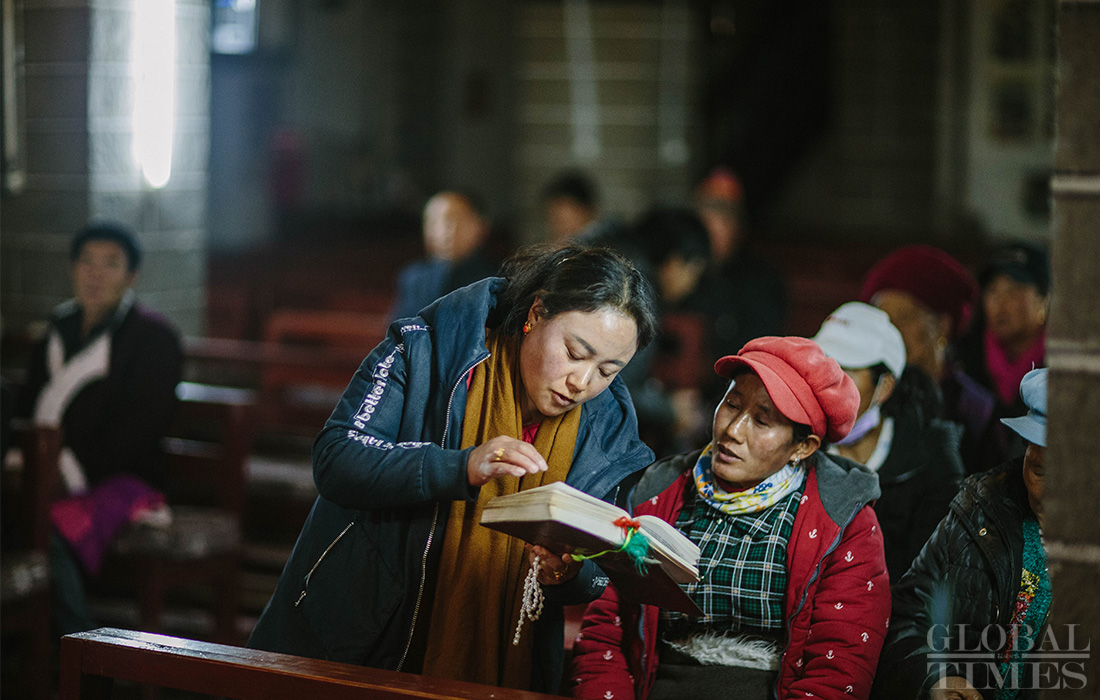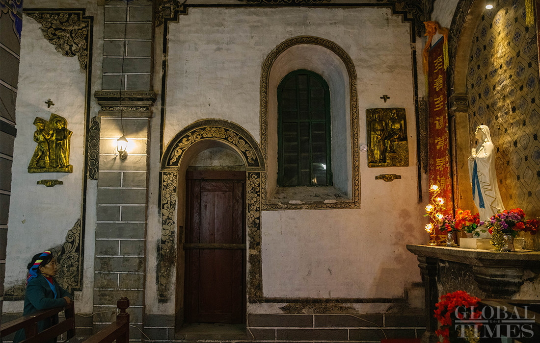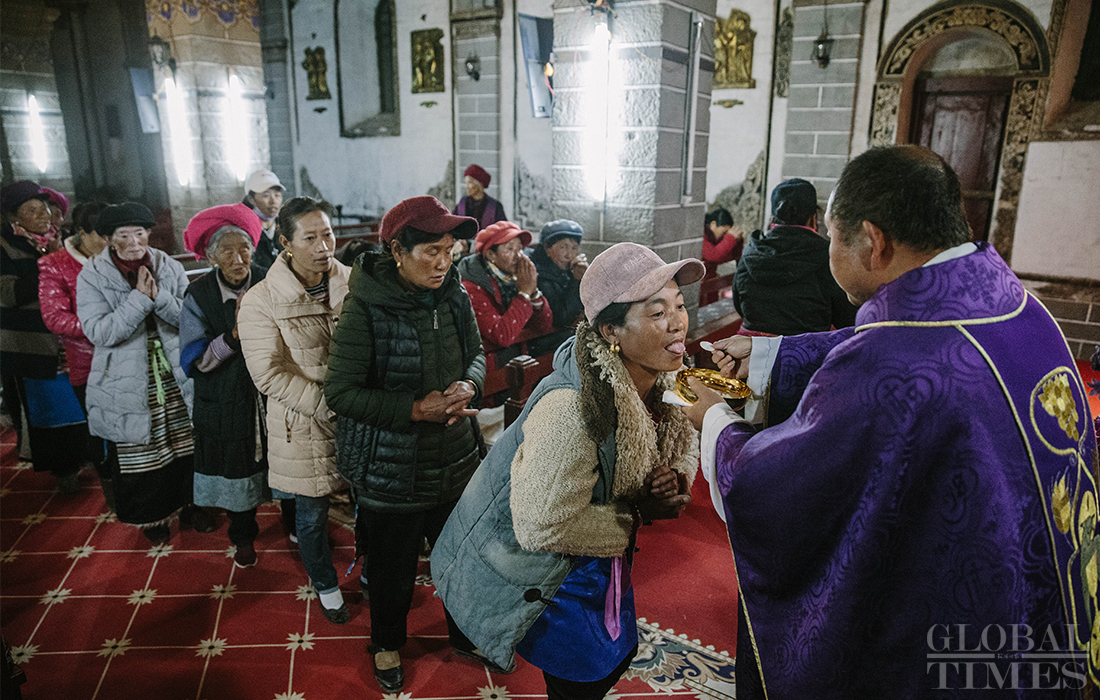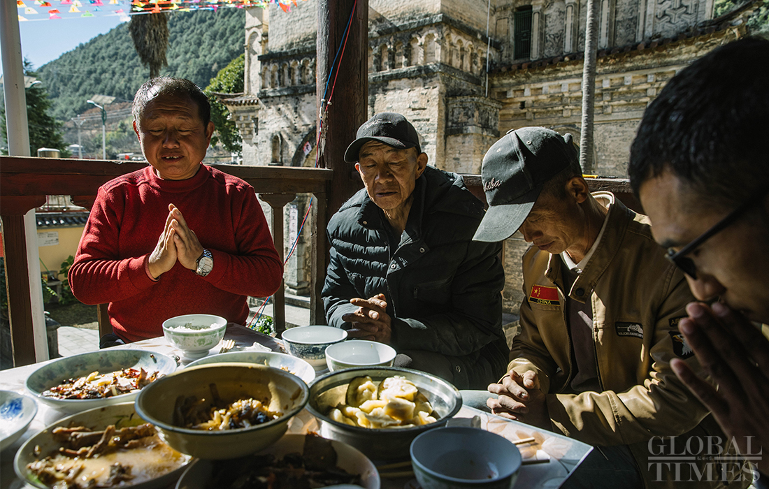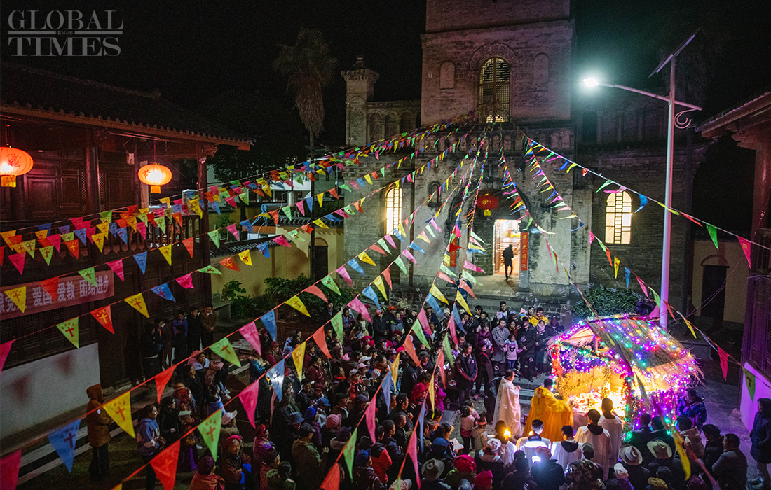 Christians in Cizhong village in Diqing Tibetan Autonomous Prefecture in South West China’s Yunnan Province celebrated Christmas on Tuesday and Wednesday. The remote village, which is surrounded by mountains, is a melting pot of multicultural communities fostering residents belonging to three religions and seven ethnic groups. Among its 1,331 residents, 40 percent are Catholics, 35 percent believe in Buddhism and 5 percent are Dongba, an ancient religion of the Naxi people. In early 1990s, French preachers for the first time introduced the Catholic religion among the locals. The Gothic-style Cizhong Church is listed as a nation-level relic. Photos: Li Hao/GT