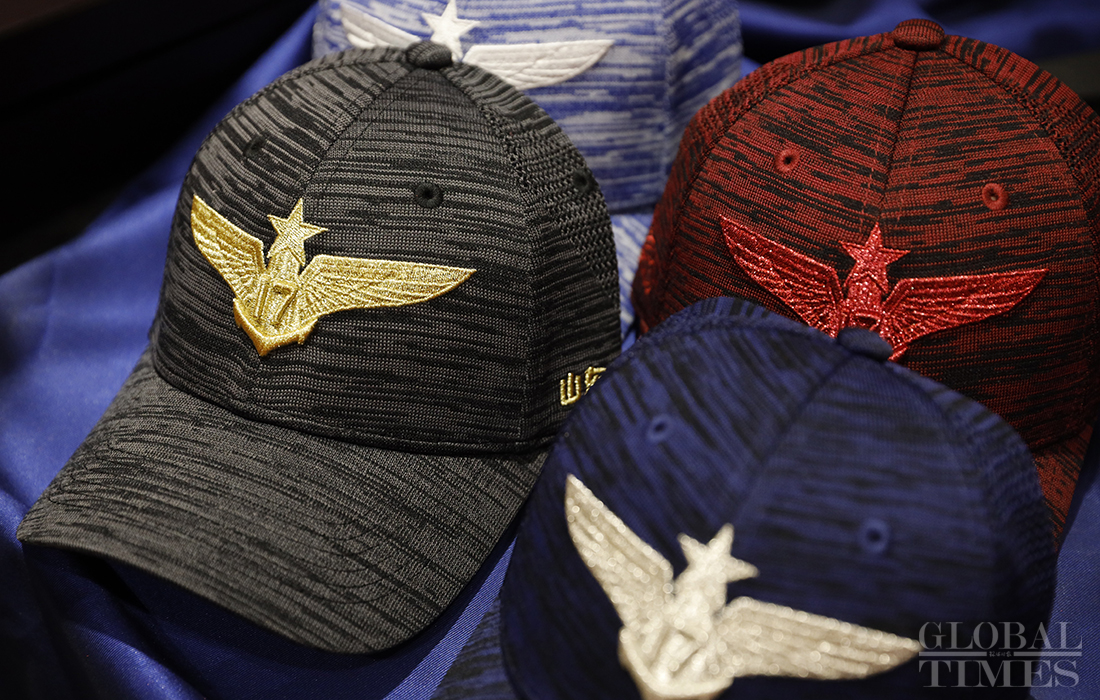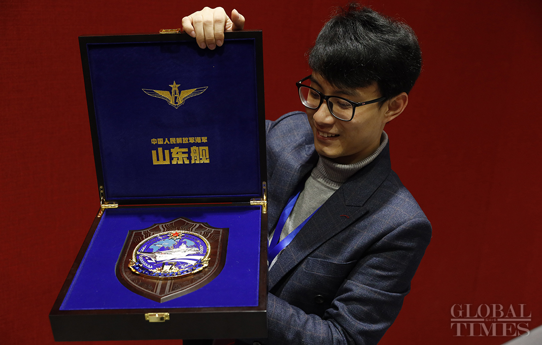 China released merchandise for its first domestically built aircraft carrier 'Shandong' in Beijing on Tuesday.
