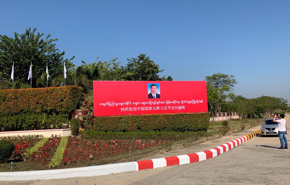 Ahead of Chinese President Xi Jinping's Myanmar visit, welcome banners with "Warm Welcome to Chinese President Xi Jinping in Myanmar" and "China-Myanmar friendly cooperation to stride" slogans are displayed on the main street in the capital city of Naypyidaw.