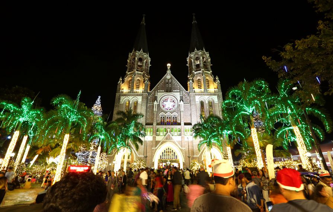 People visit a church during 2019’s Christmas in Yangon, Myanmar. (Photo: Xinhua) figcaption >