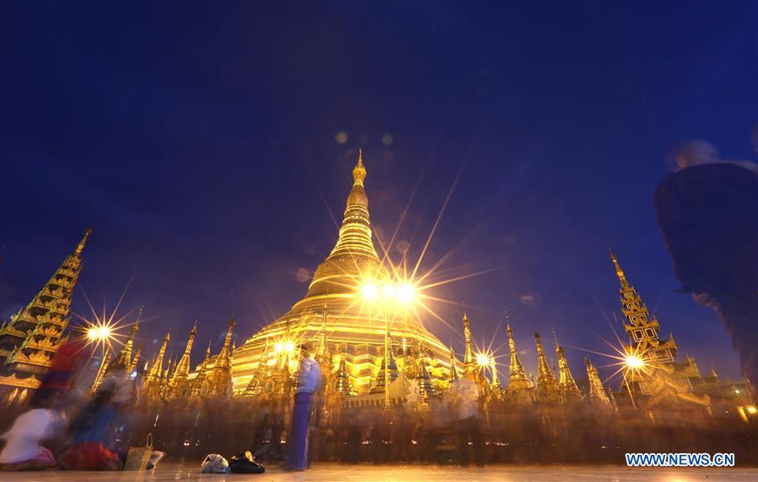 People visit the Shwedagon Pagoda during the traditional Thadingyut Lighting Festival in Yangon, Myanmar. Shwedagon Pagoda, the most sacred Buddhist pagoda in Myanmar, is believed to contain relics of the four previous Buddhas belonging to the present kalpa. (Photo: Xinhua)