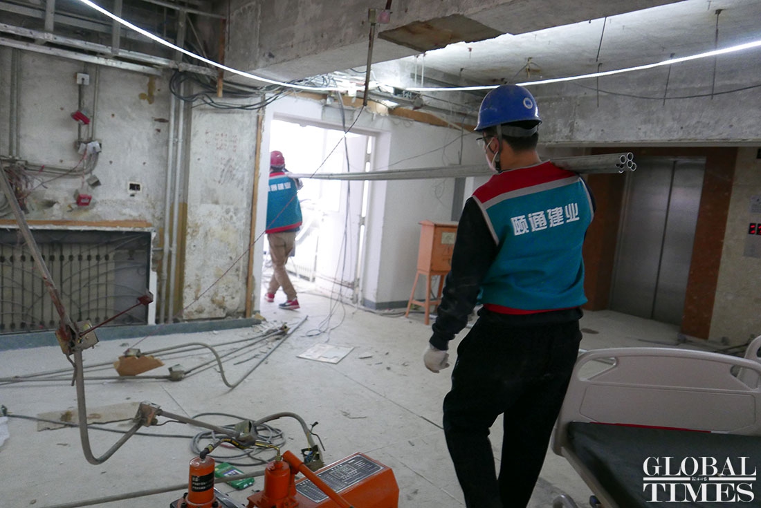Hundreds of workers started reconstructing Beijing's Xiaotangshan Hospital on January 29 amid the novel coronavirus outbreak. The hospital was built in 2003 in just seven days to treat SARS patients. Photos: Li Hao/GT
