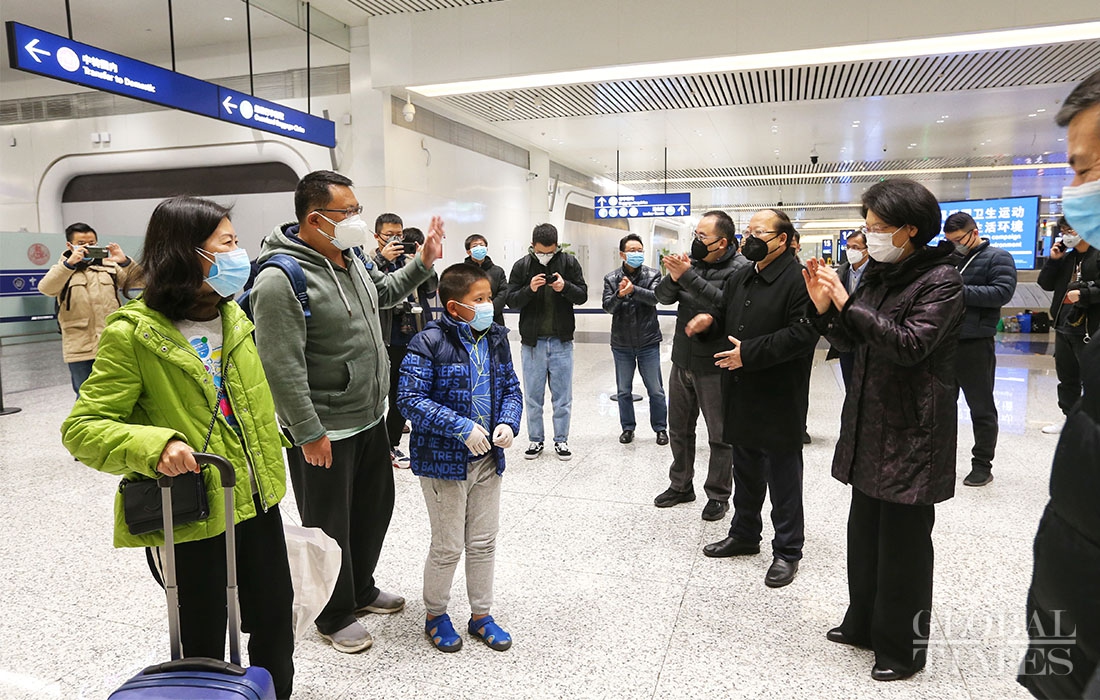 Photos taken on January 31 show Hubei passengers arriving at Wuhan Tianhe Airport by charter flight from Bangkok. The Chinese government sent two charter planes to fly 199 stranded Hubei passengers back to Wuhan from Bangkok and Kota Kinabalu. (Photos: Cui Meng/GT)