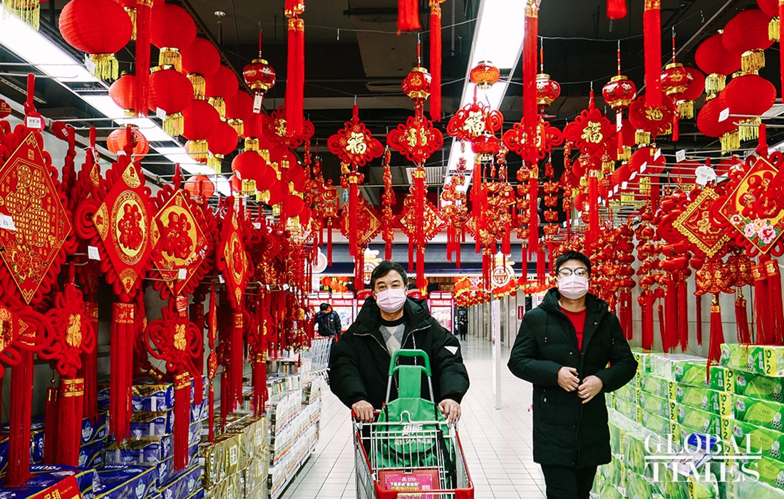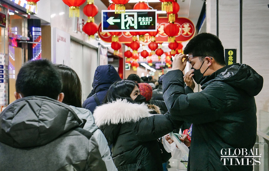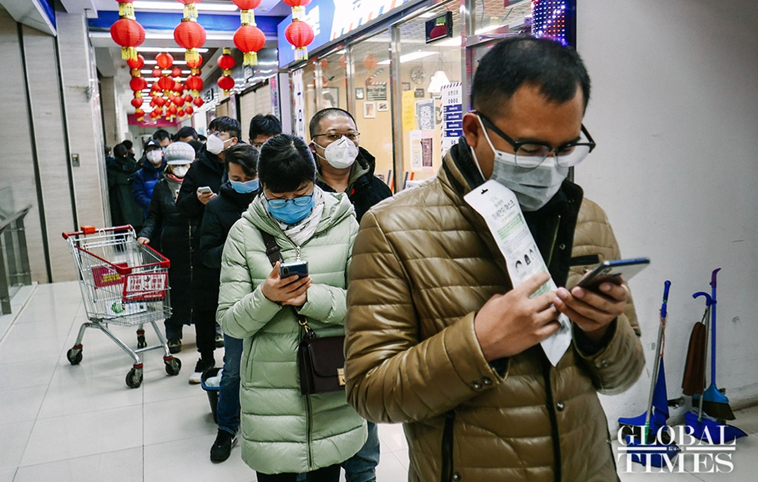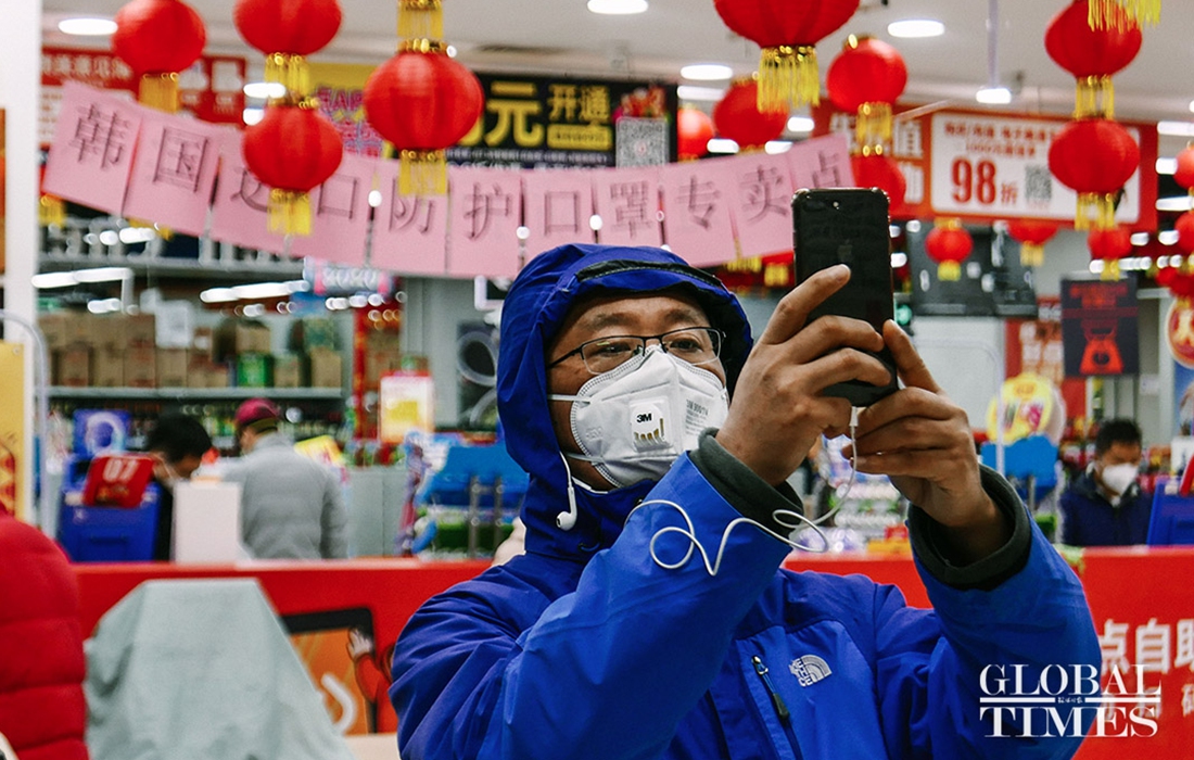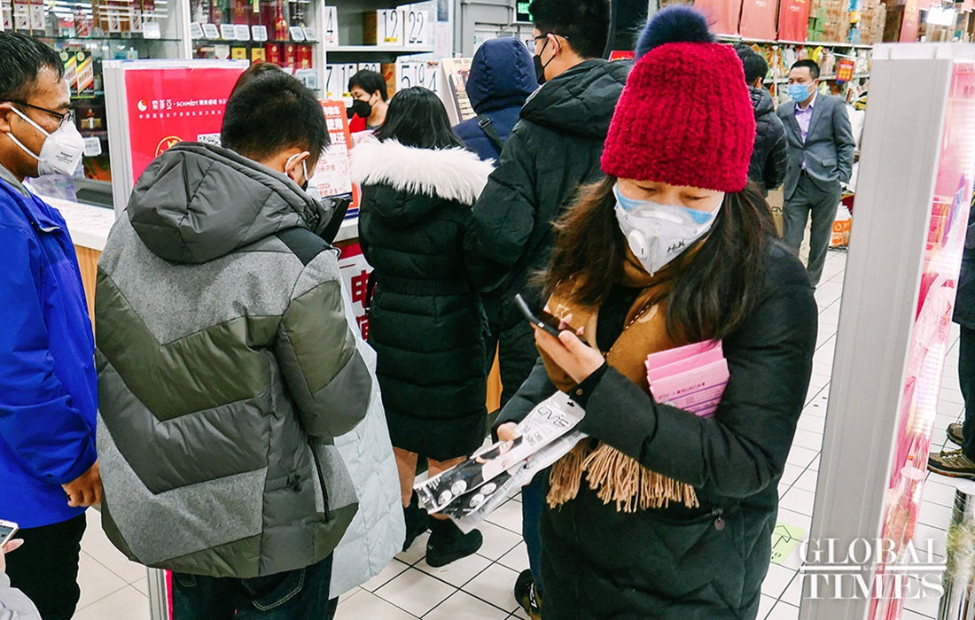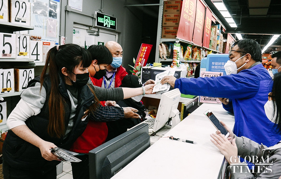 People came to the supermarket to purchase masks. The GT reporter learned that Wumart Supermarket‘s first batch of 3 million imported KF94 masks have arrived in store and will also be sold simultaneously online. The daily sale of masks per person will be limited.