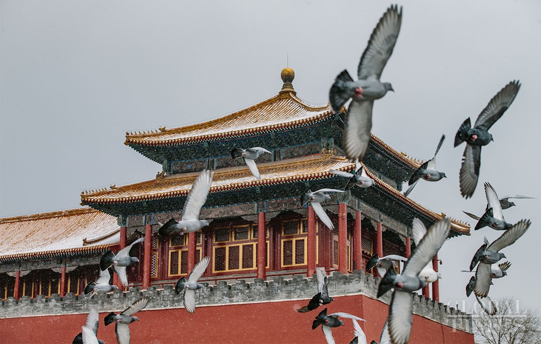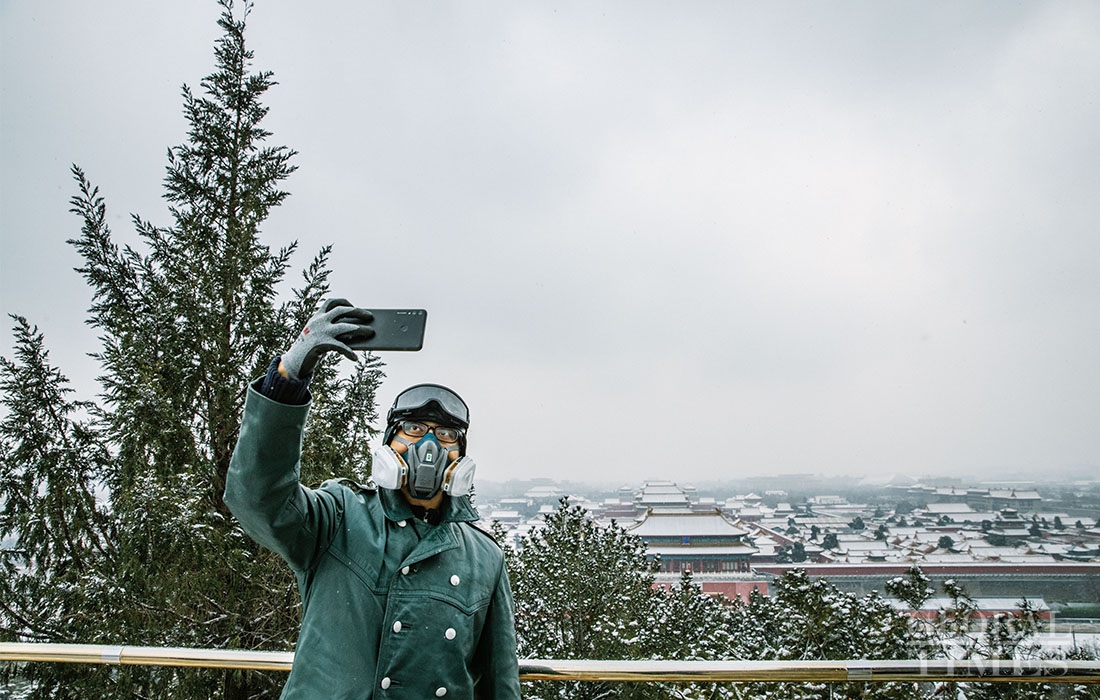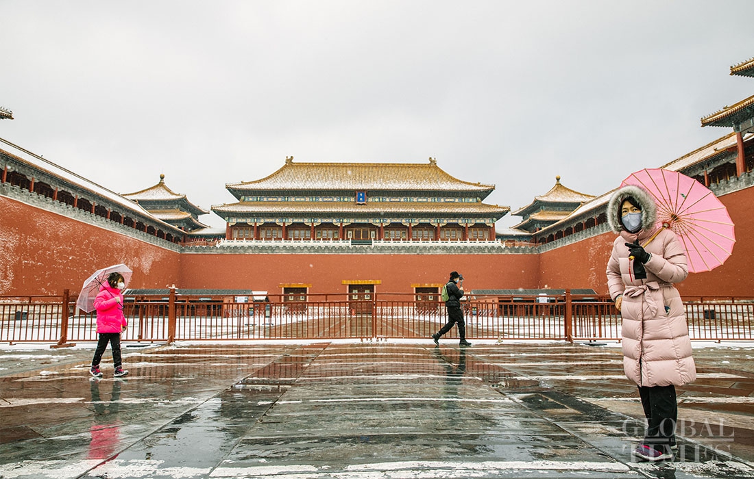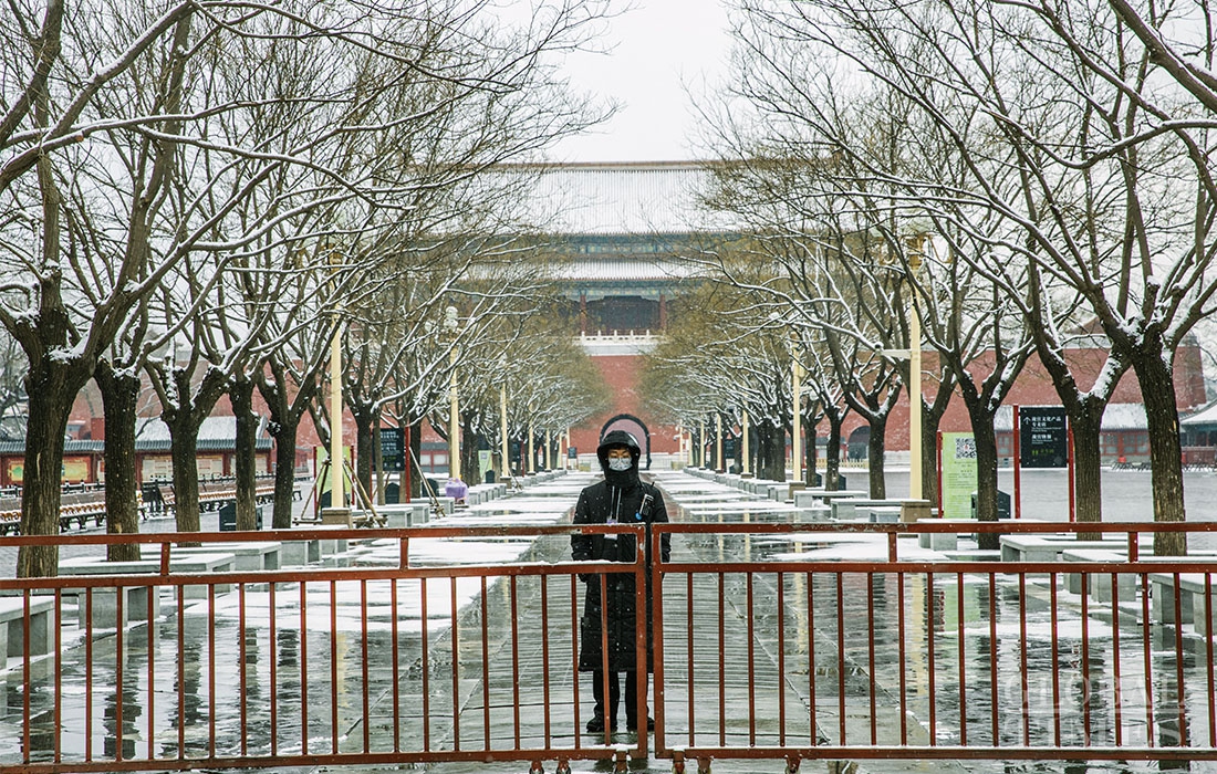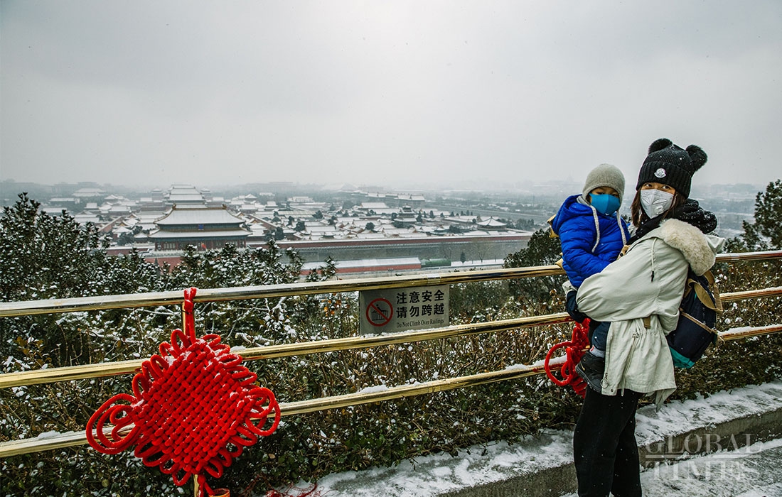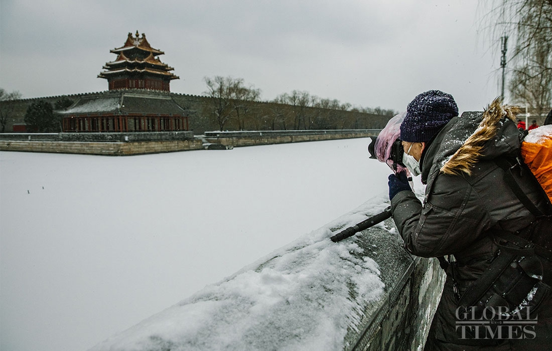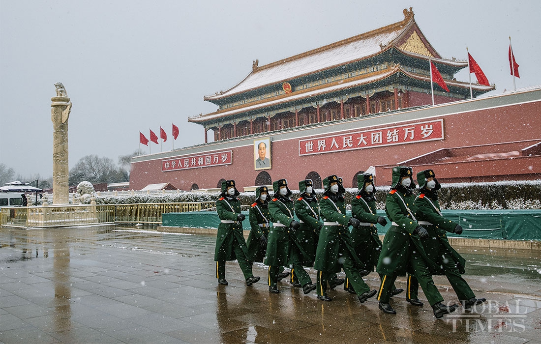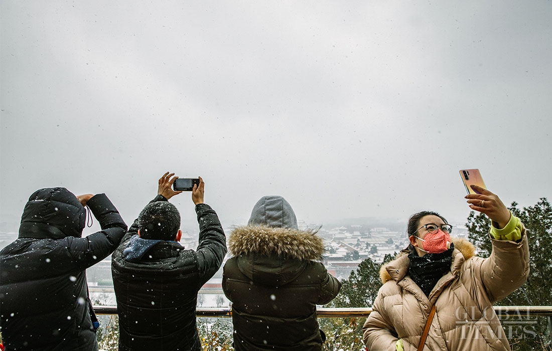 Some people wearing masks are seen at scenic spots in Beijing such as Tiananmen Square as the city received a sudden snowfall on Feb 5, 2020. People have been advised to stay indoors to avoid contracting the coronavirus. Photos: Li Hao/GT