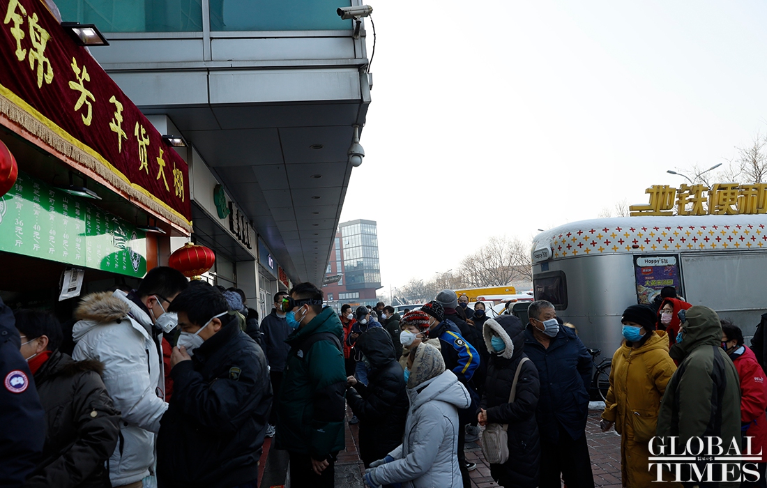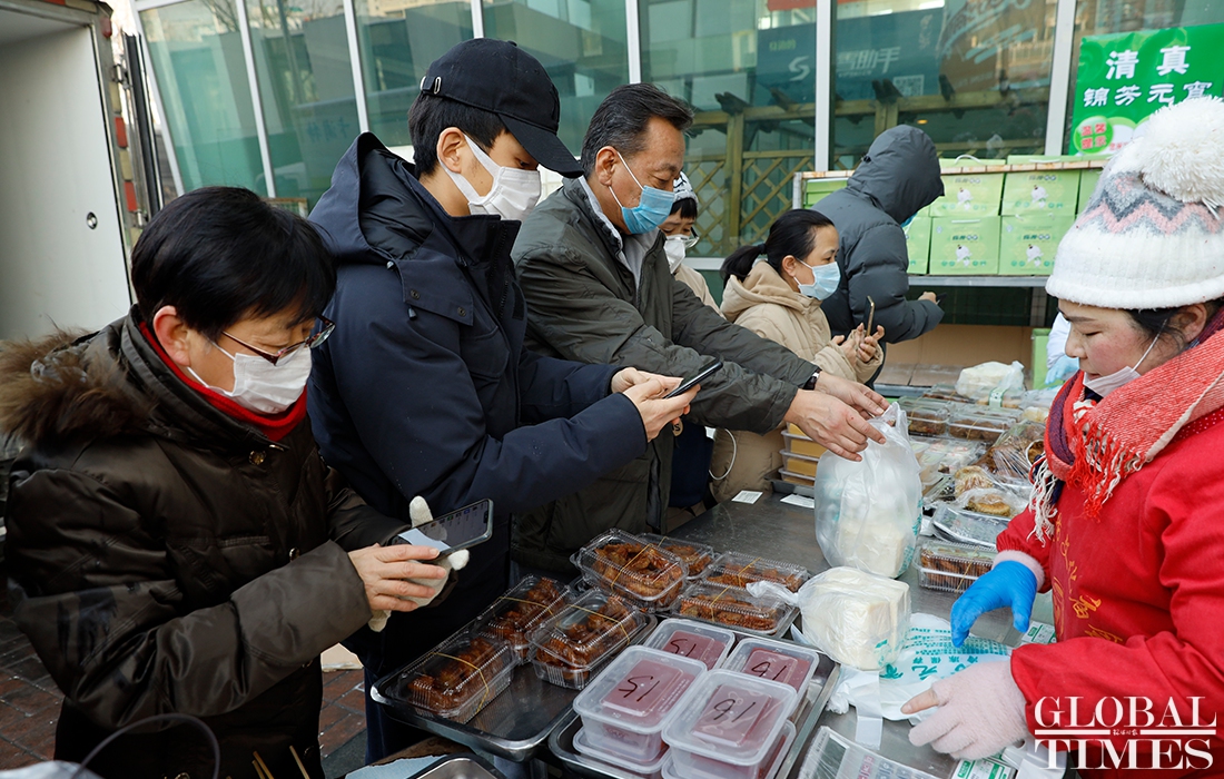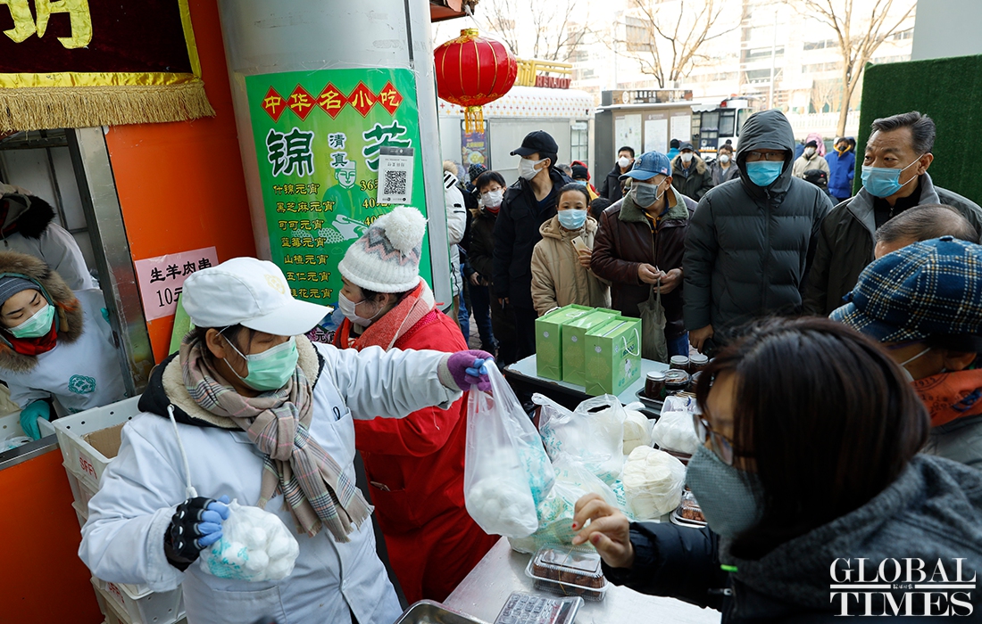 Residents stand in queues in front of a time-honored food store in downtown Beijing to buy yuanxiao, or glutinous rice balls, in preparation for the Lantern Festival which falls on February 8 this year. Photos: Li Hao/GT