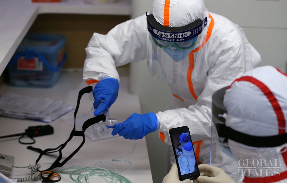 Medical personnel in Wuhan spent their Lantern Festival holiday treating coronavirus patients at Tongji Hospital on Saturday, January 8. Doctors and hospital staff from different provinces have joined together in the fight against the respiratory virus. Tongji Hospital was designated to treat severe cases and has continued to receive a growing number of infected patients since the novel coronavirus pneumonia outbreak began. (Photos: Cui Meng/GT)