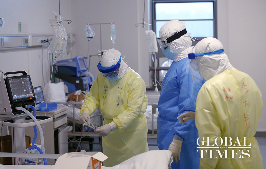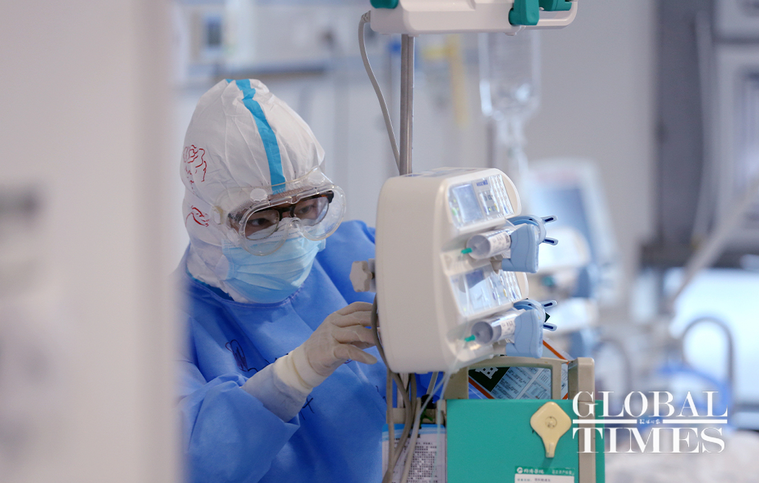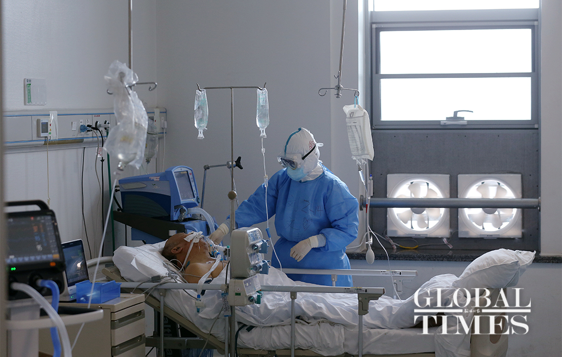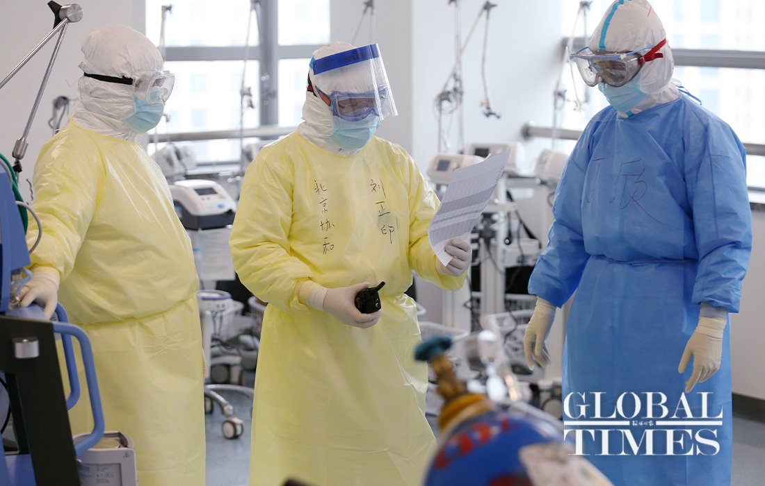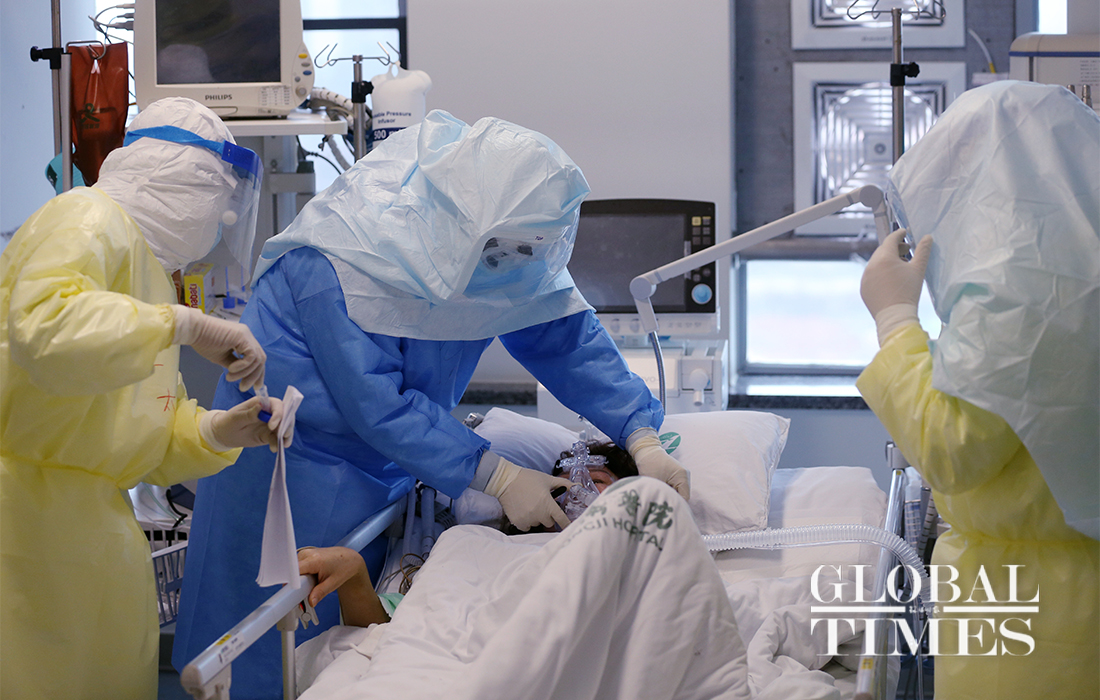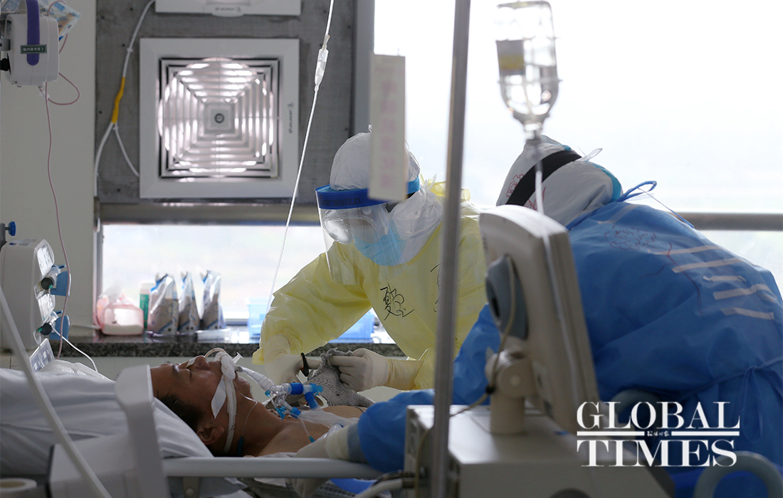 Reducing the mortality is an essential part of the prevention and treatment of the novel coronavirus pneumonia (COVID-19). On Saturday, a medical team from Peking Union Medical College Hospital in the Critical Care Unit at the Zhongfa Xincheng branch of Wuhan Tongji Hospital successfully removed ventilators from 13 critically ill patients who were later transferred to the hospital’s general ward. (Photo: Cui Meng/GT)