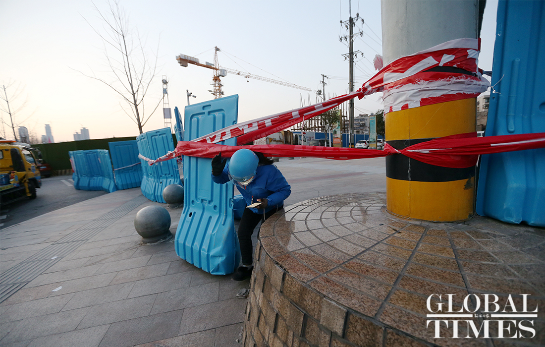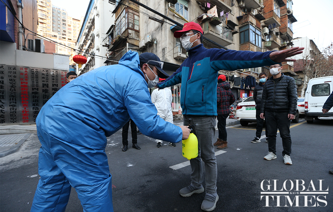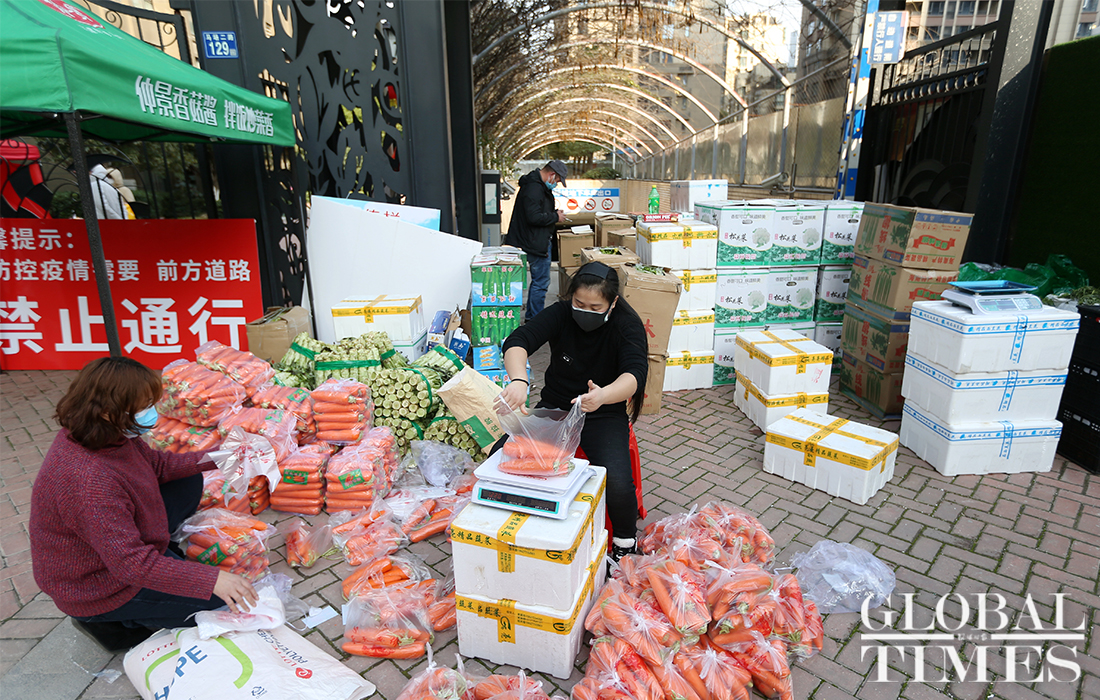 With a population of more than 11 million, Wuhan, the novel coronavirus outbreak epicenter, vowed a citywide dragnet style inspection for the virus to make sure all those who have contracted COVID-19 are identified within three days. The inspection started on Feb 17. Global Times reporters learned that many communities strictly prohibited unauthorized personnel from leaving and entering the community and encouraged the purchase of essential necessities, such as vegetables, in the community. However, as of 6:20pm Wednesday, there were still some communities unguarded, and people were free to come and go. Some residents in Wuchang district said that there was no sanitation management in the buildings, no inspections conducted by any community officials, and no guaranteed living supplies.Photos: Cui Meng/GT