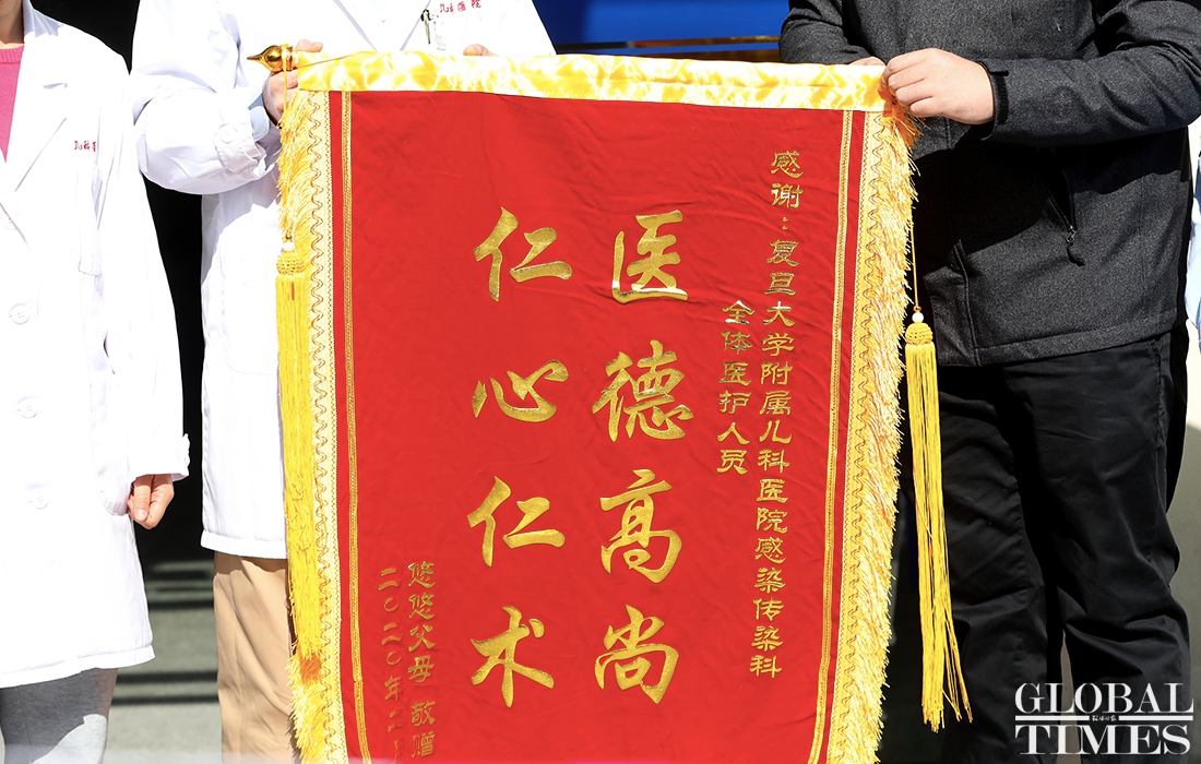 Qiqi's parents presented a banner to the medics as an expression of their gratitude. Photo: Yang Hui/GT figcaption >