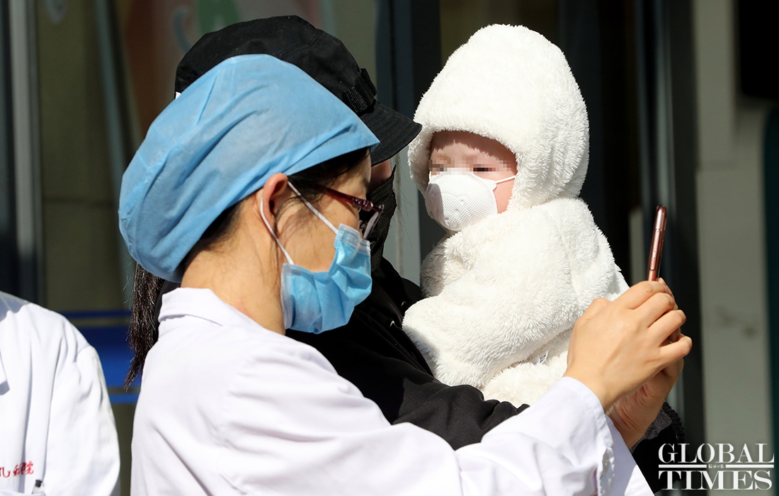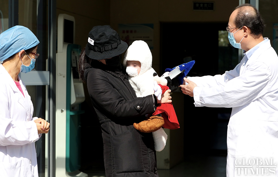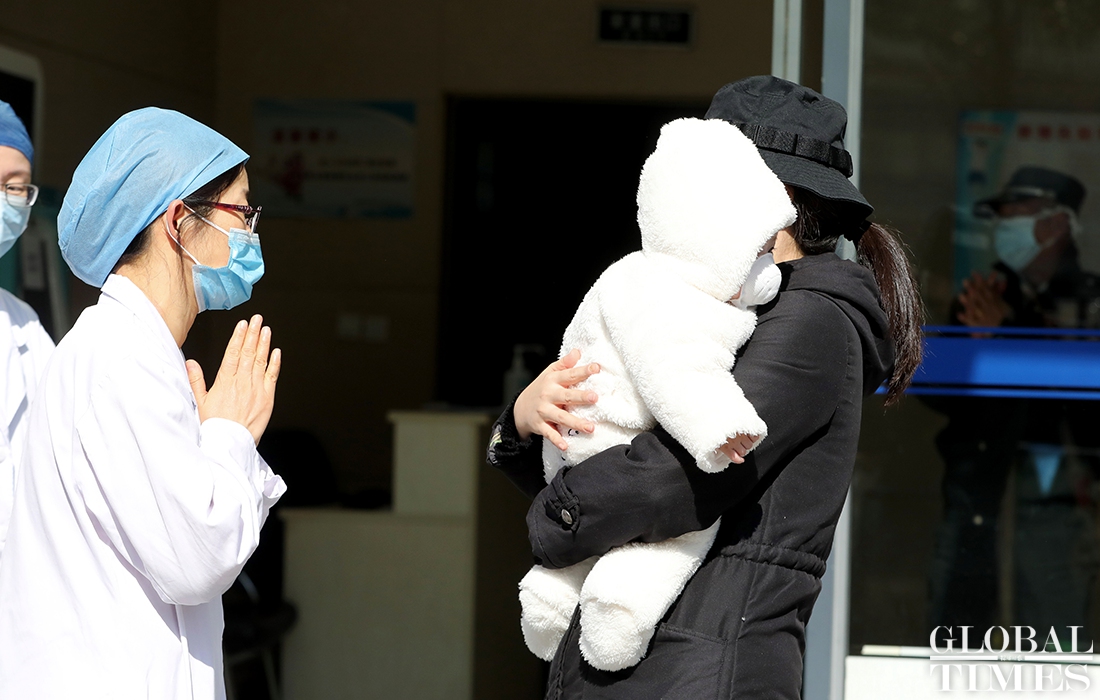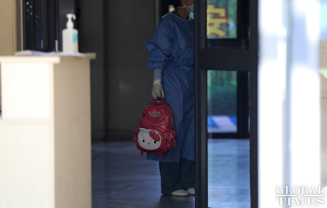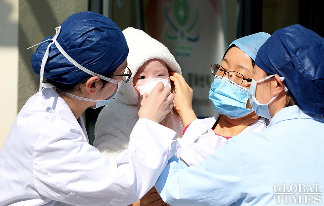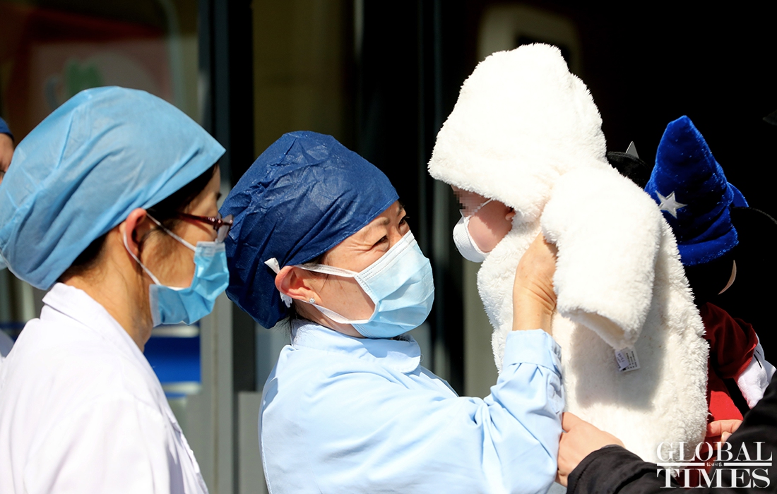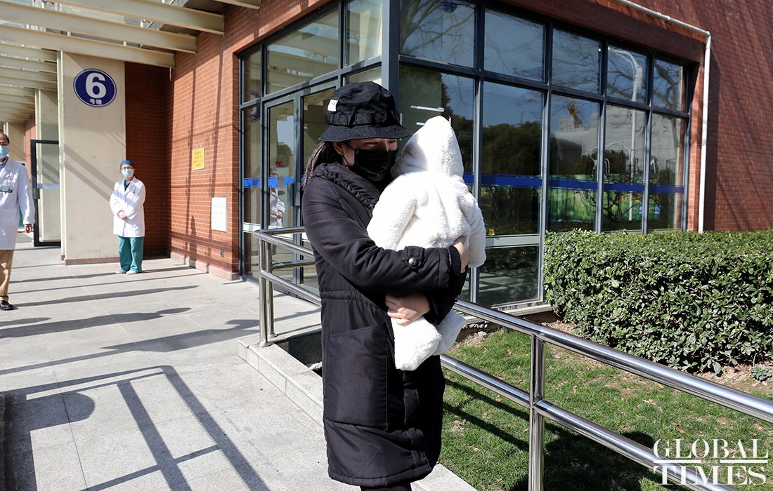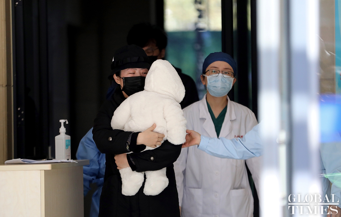 7-month-old Qiqi, the youngest COVID-19 patient in Shanghai, recovered after 17 days of treatment, and was discharged on Thursday. So far, 6 infected children have been cured and discharged. Photos: Yang Hui/GT