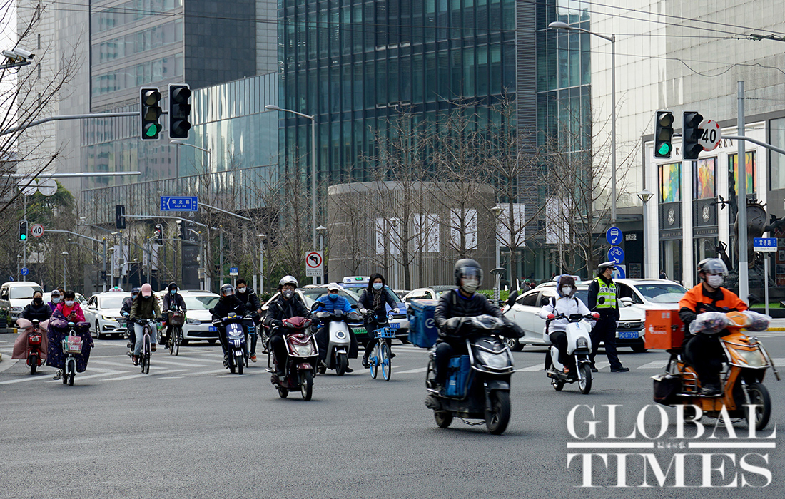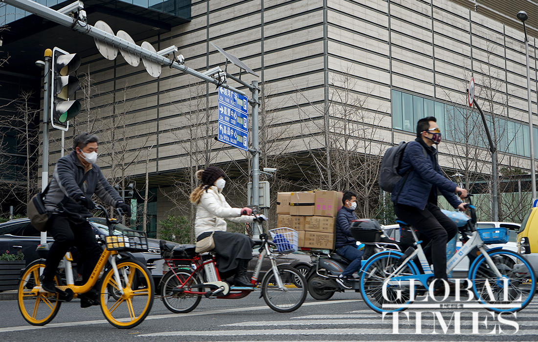 As over 70 percent of businesses in Shanghai have resumed work, the "early rush hour" was returned to the city. The traffic volume in downtown Shanghai has significantly increased compared with the previous days, including a rise in the subway passenger flow. Wearing face masks in public places and public transport continues to be mandatory in the city during the COVID-19 epidemic prevention and control period.