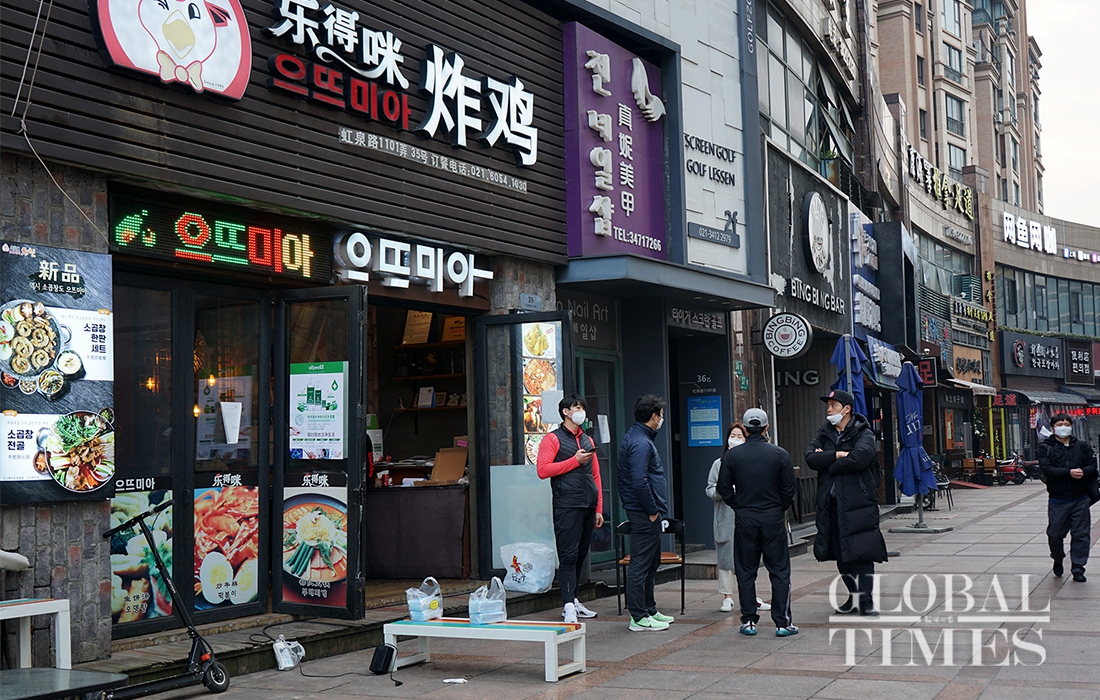 Most of the shops in a South Korean community in Minhang district of Shanghai were open for business amid the COVID-19 outbreak on Tuesday but few had customers.