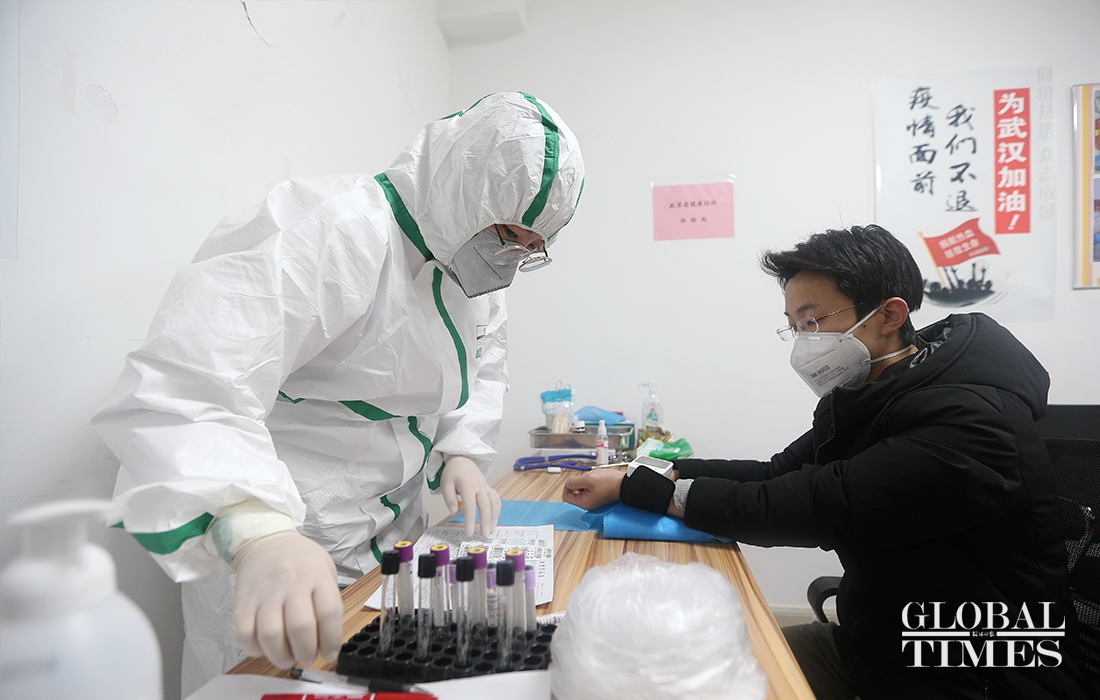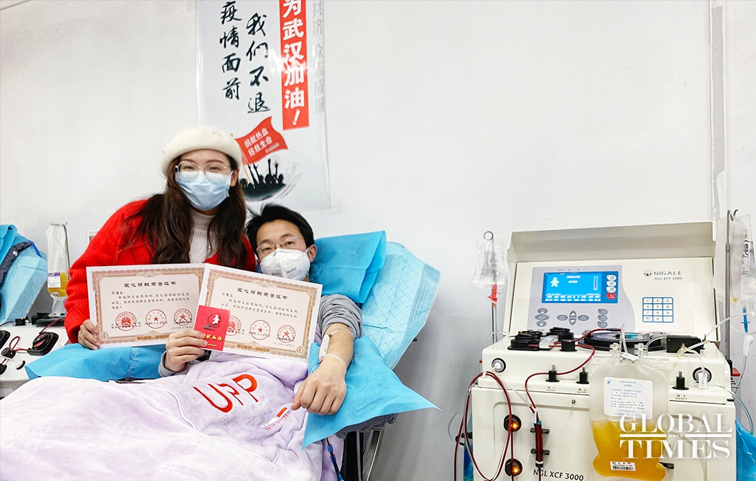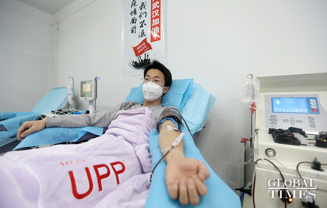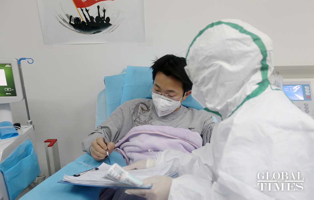 Xu Delong, a doctor of orthopedics department in Wuhan No.4 Hospital, infected with the COVID-19 when he received a patient in January. It is the second time that he donated plasma for other patients after he was cured. When talked about the treatment of COVID-19, Xu mentioned that after the outbreak of the virus, receiving treatment in hospitals became very difficult. So he decided to stay at home and provide his professional knowledge to fight with the virus. Doctor Xu said that if he hadn’t been infected with the virus, he must be fighting at the front line with his colleagues now. "Seeing my colleagues fighting so hard at the front line, I feel so worried and always want to do something for them. And now the only thing I can do to help is to donate plasma regularly. " (Photos: Cui Meng/GT)