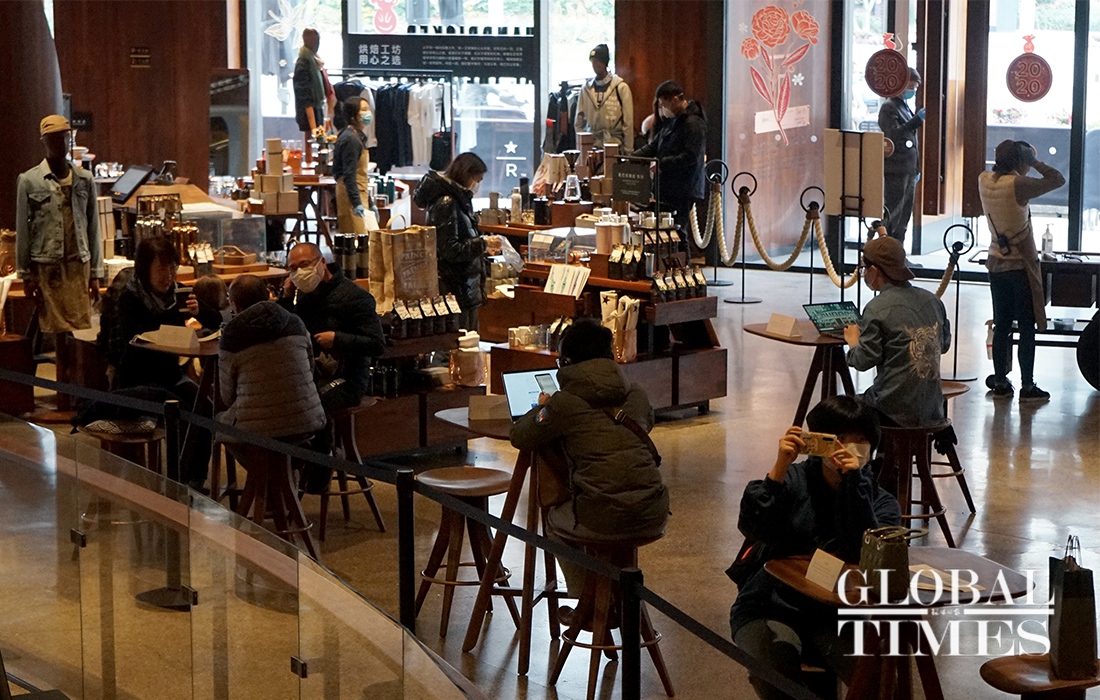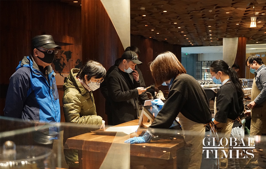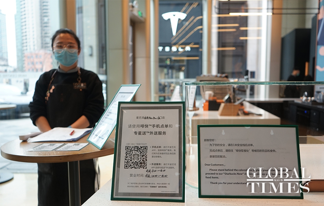 It is one of hundreds of Starbucks stores that resumed trading recently in China as the epidemic gradually wanes. Starbucks has shut more than half of its 4,292 shops in China since late January to prevent the spread of the coronavirus.Photos: Chen Xia/GT