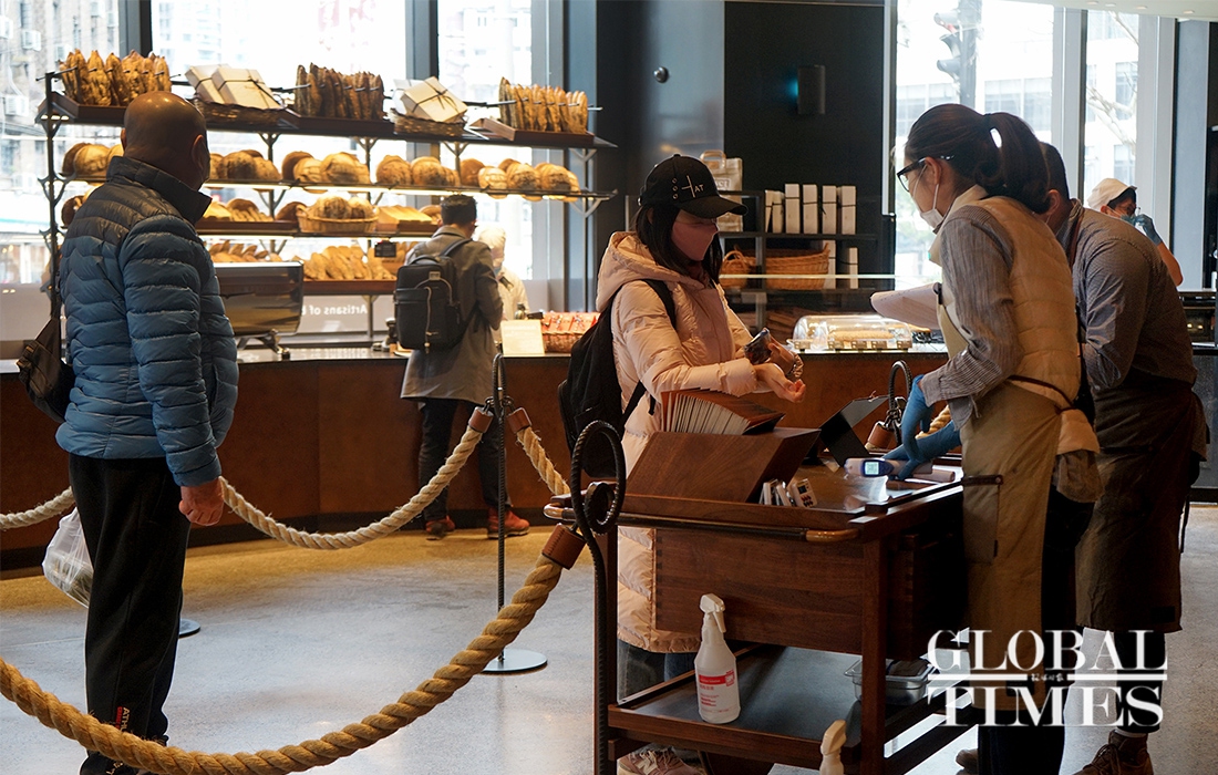 On Wednesday afternoon, dozens of customers were placing orders or eating in the Starbucks Reserve Bakery shop in Shanghai which opened on February 26 after being closed for about a month during the coronavirus epidemic.