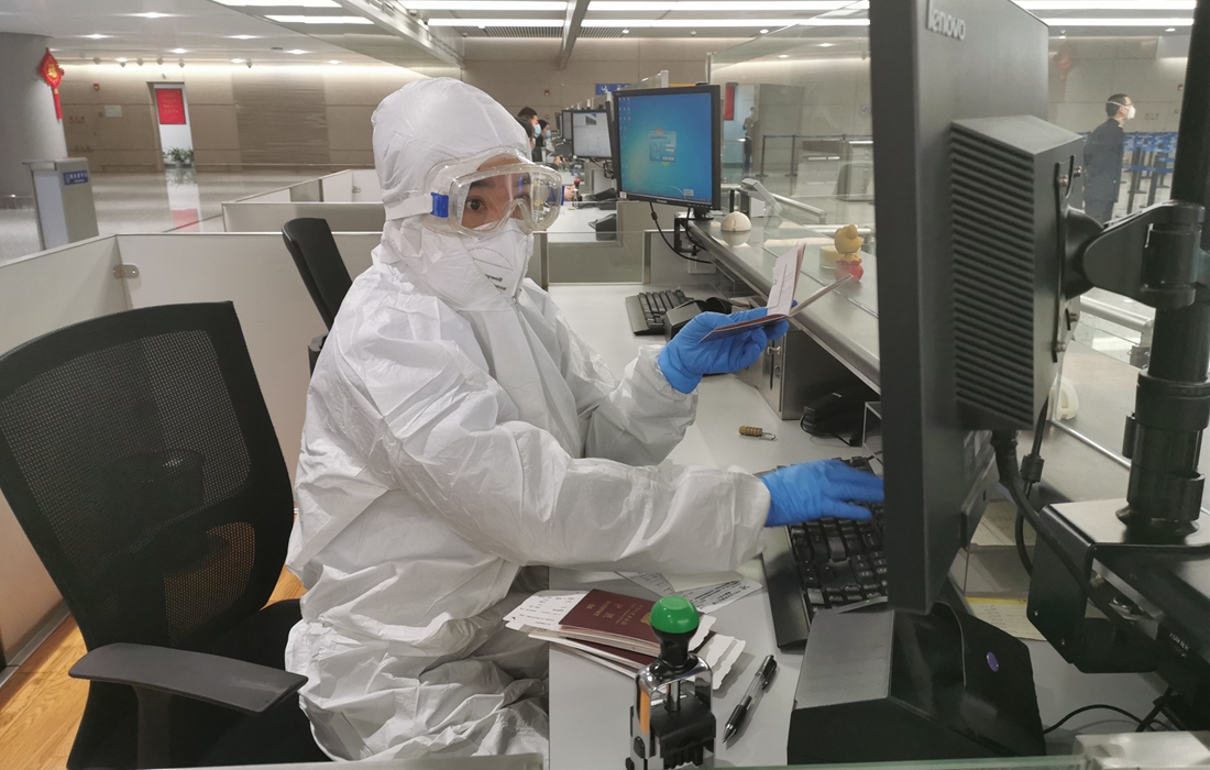 Female immigration officials in Shanghai diligently handle entry-exit process amid COVID-19 outbreak