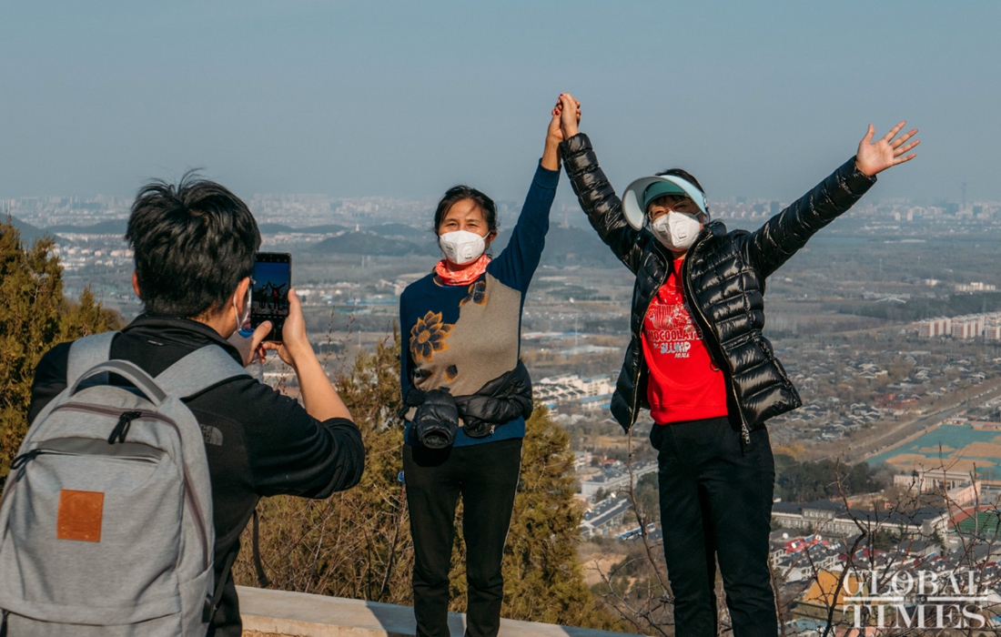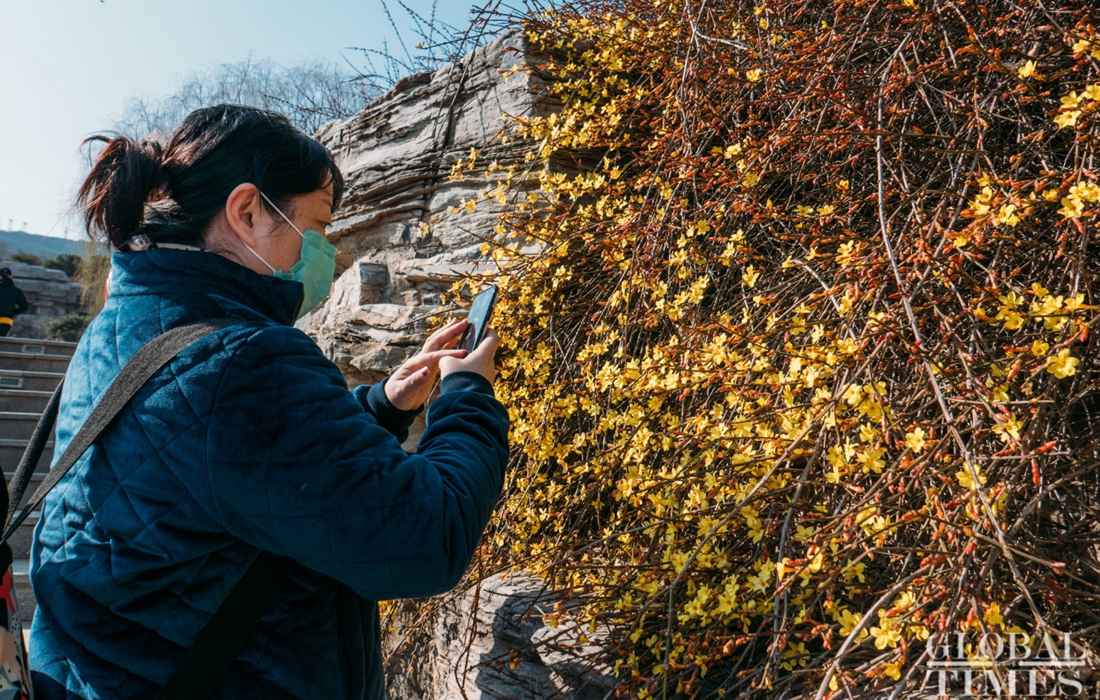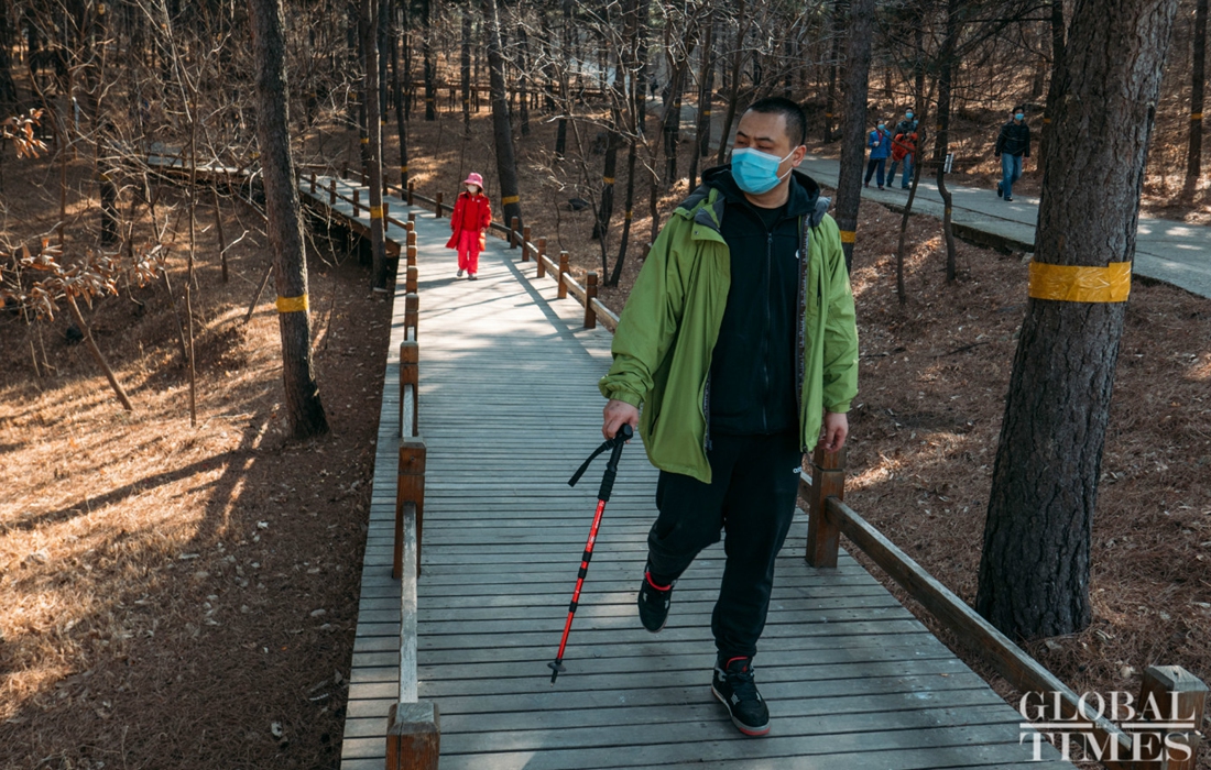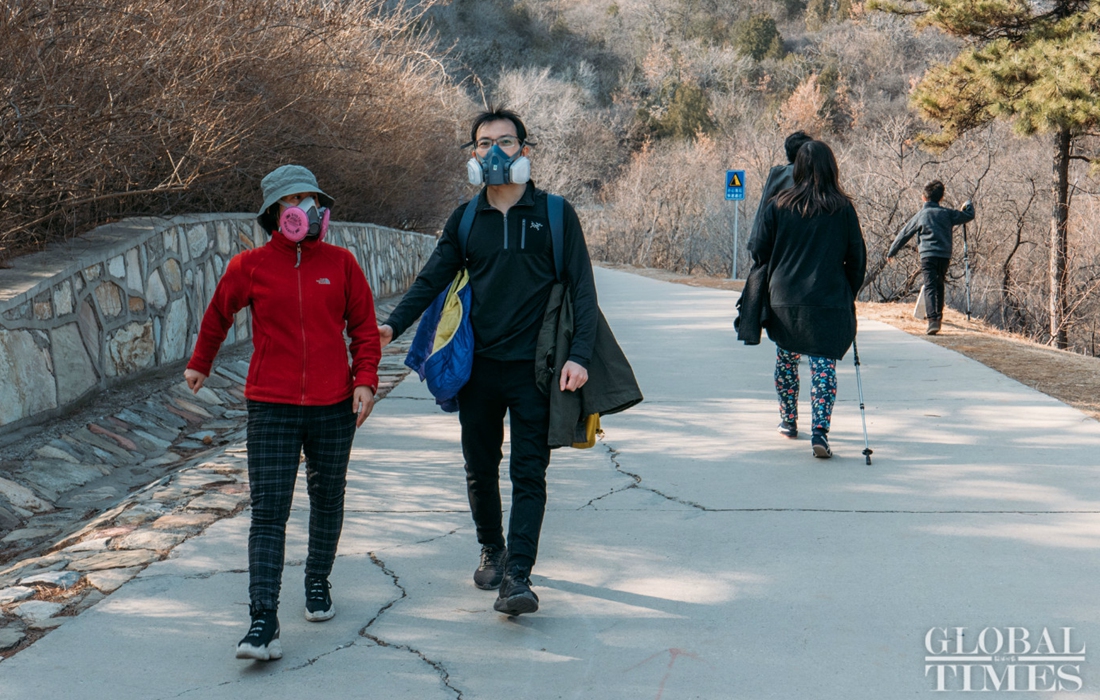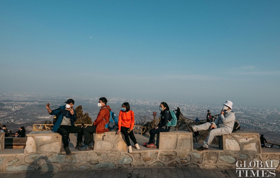 Beijingers are spotted hiking in the city's Xishan Forest Park on Saturday as the weather turns warmer, heralding the arrival of spring. The park has implemented strict safety regulations to cap the number of visitors amid the coronavirus outbreak.