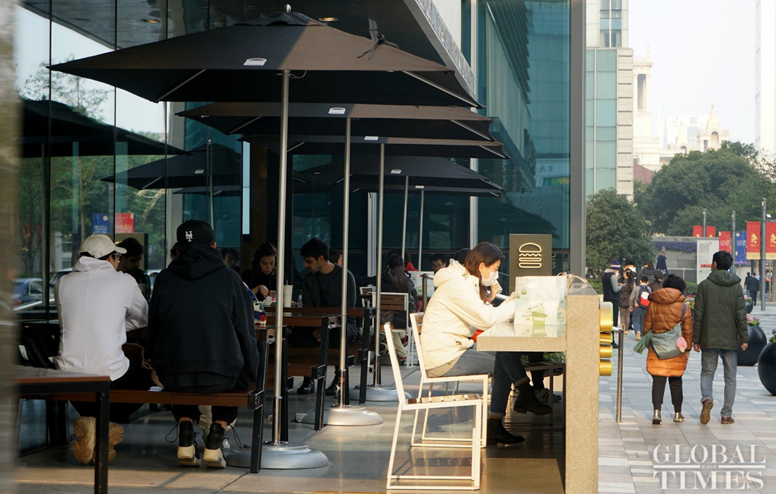 In Jing’an, an area in downtown Shanghai, some hamburger, beverage, and coffee outlets reopened after a brief hiatus following the coronavirus outbreak. People were even seen queuing outside some shops, signaling a gradual recovery of the coronavirus-battered dining sector.