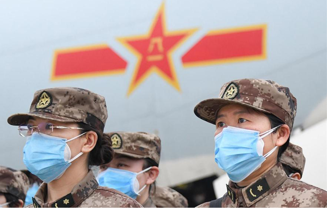 Military medical staff airlifted by eight large transport planes of the air force of the People's Liberation Army (PLA) arrive at Tianhe International Airport in Wuhan, central China's Hubei Province, Feb 2, 2020. Photo: Xinhua figcaption >