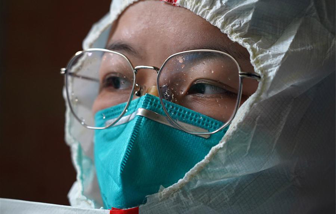 Photo taken on Jan. 22, 2020 shows Zhou Qiong, a doctor of department of respiratory medicine at Union Hospital affiliated to Tongji Medical College of Huazhong University of Science and Technology, who is a member of "assault team" in the fight against the pneumonia caused by the novel coronavirus in Wuhan, central China's Hubei Province. Photo: Xinhua figcaption >