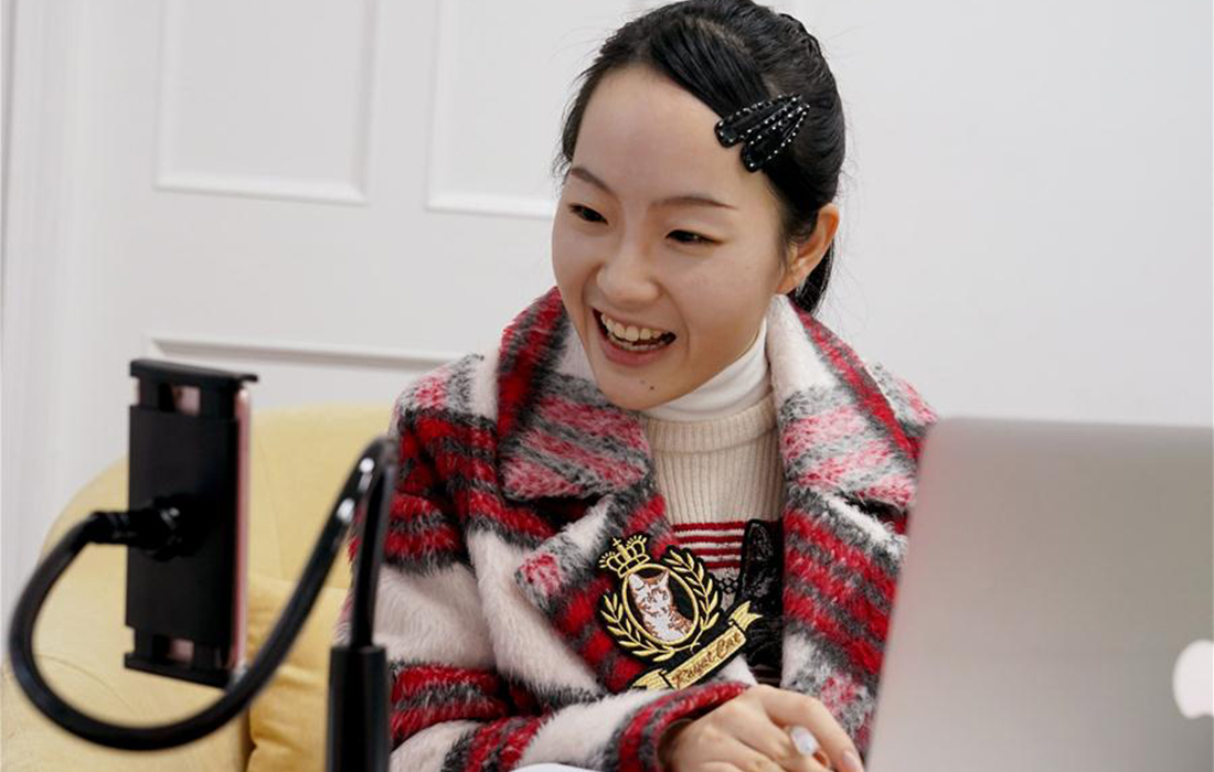 Teacher Chen Weiwen interacts with her students during a trial online class in Shanghai, east China, Feb 25, 2020. Photo: Xinhua figcaption >