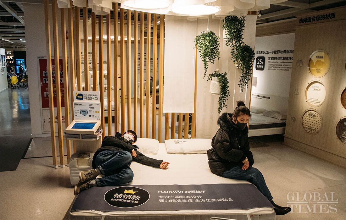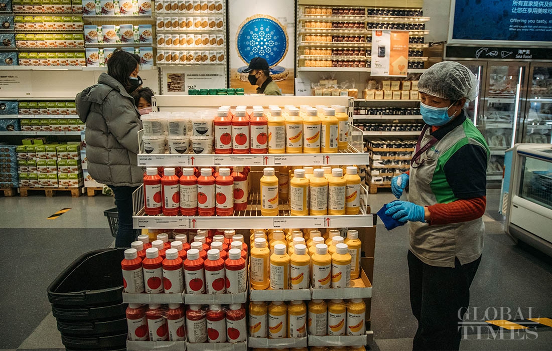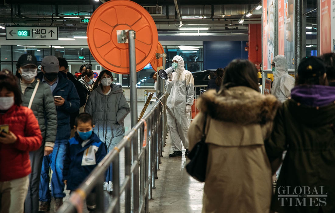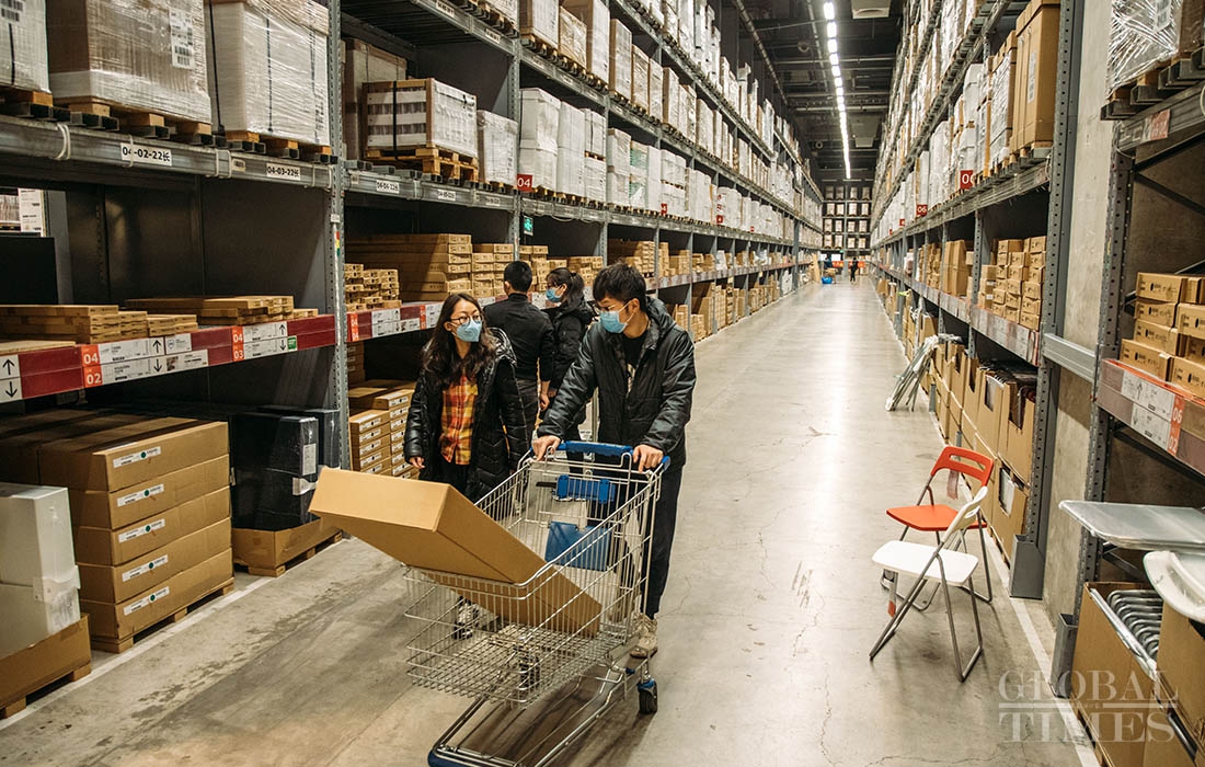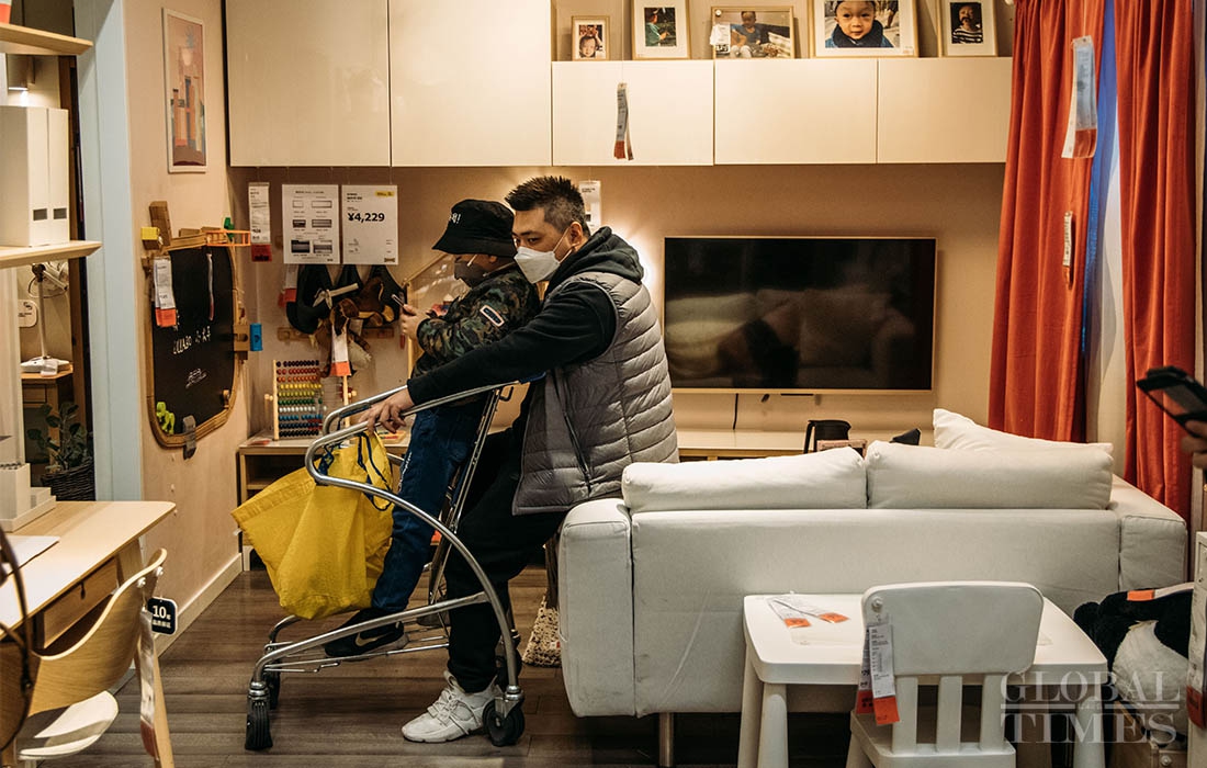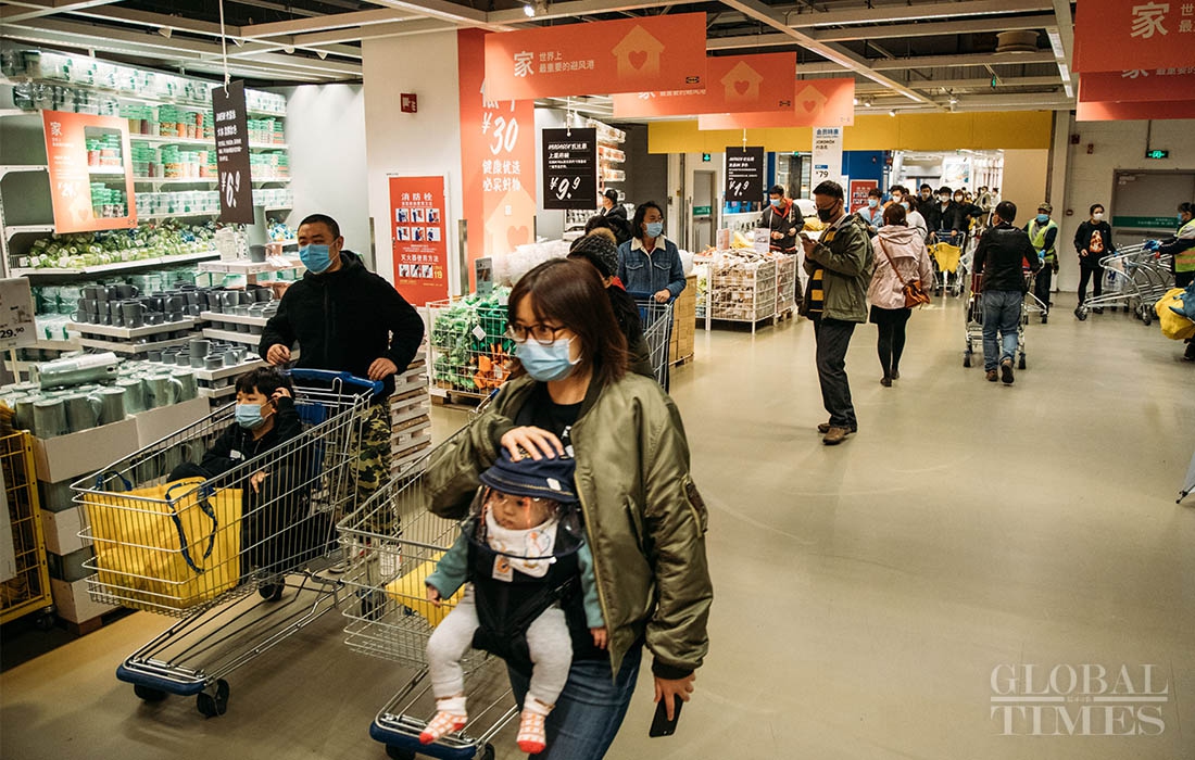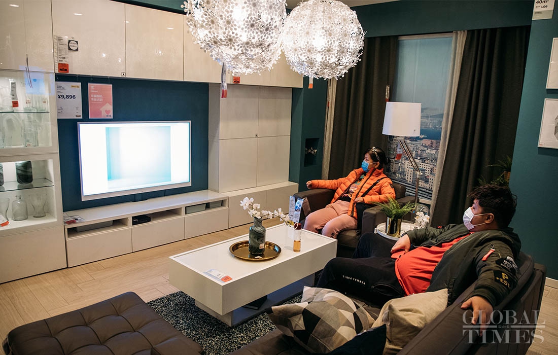The IKEA store in Daxing district, Beijing, resumes work on Mar 8, International Women's Day. Shoppers are required to take their temperatures at the entrance of the parking lot and scan the code to register their personal information before entering the store. Restaurants and children's playgrounds have been closed to avoid crowds. Photos: Li Hao/GT