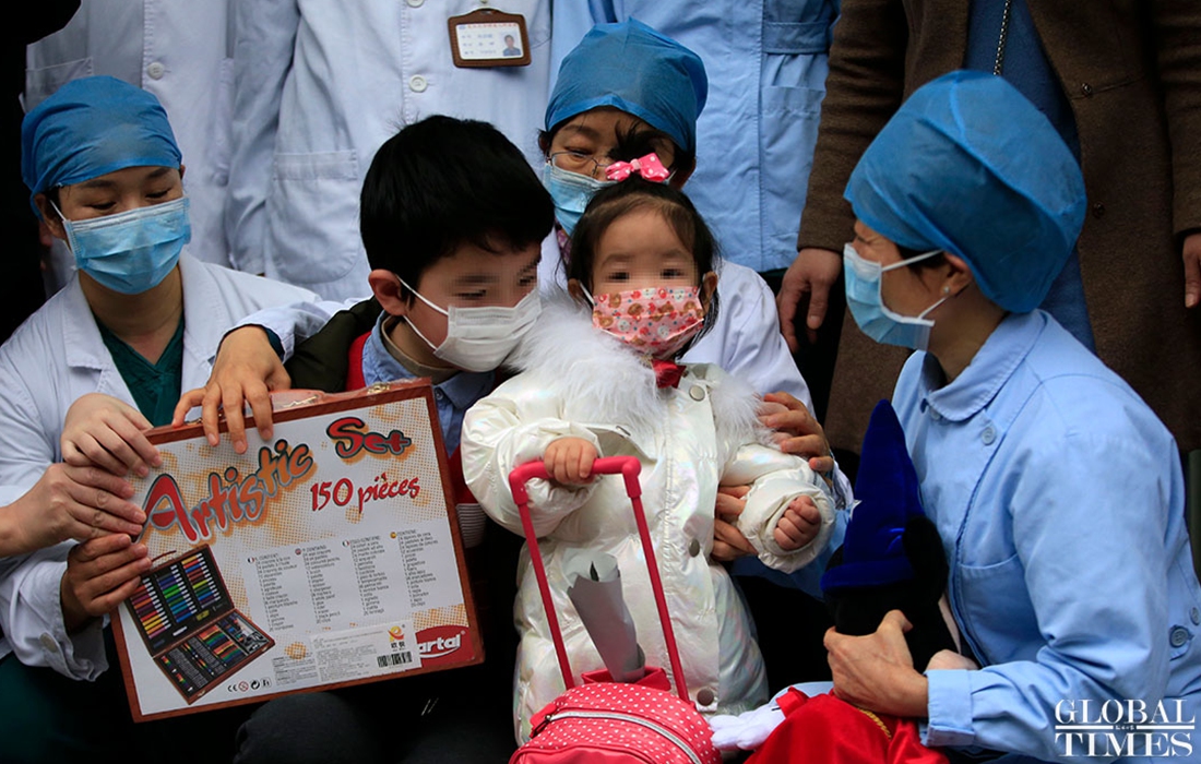 On the morning of March 13, A 22-month-old infant and a 10-year-old child infected with COVID-19 were discharged from a Shanghai hospital. As all 11 reported infections in children have been cleared, Shanghai now has no COVID-19 patients who are children.(Photos:Yang Hui/GT)