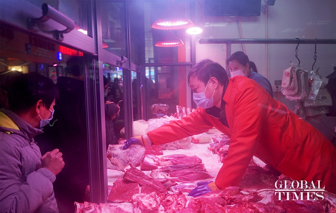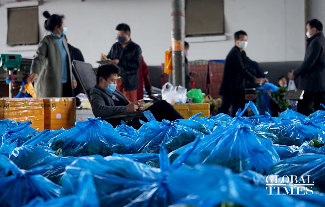 Shanghai agricultural wholesale markets have fully resumed business with a 100% work resumption rate. The transaction volume has been restored to the same period of the previous year with ample supply of vegetables and meat. Prices are stable.(Photos: Chen Xia/GT)