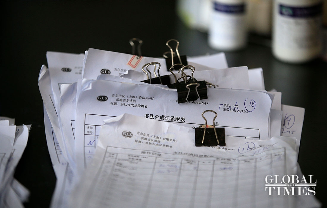 Tissue polypeptide antigen (TPA) is the primary agent for developing a vaccine against coronavirus, and Shanghai's GL Biochem company is busy producing the element. 40 of their labs are currently functioning, and 500 workers have successfully produced 3500 TPAs in just three weeks. These TPAs will be used in vaccine development and related scientific experiments globally. (Photos: Yang Hui/GT)