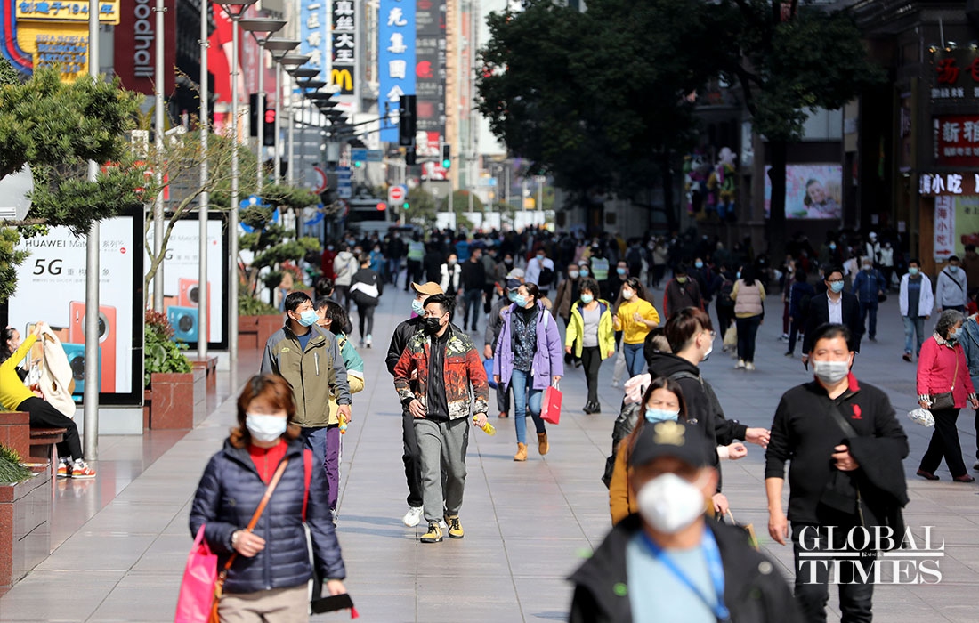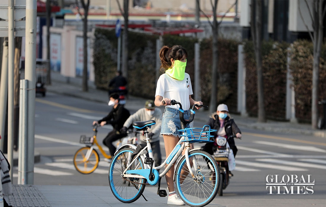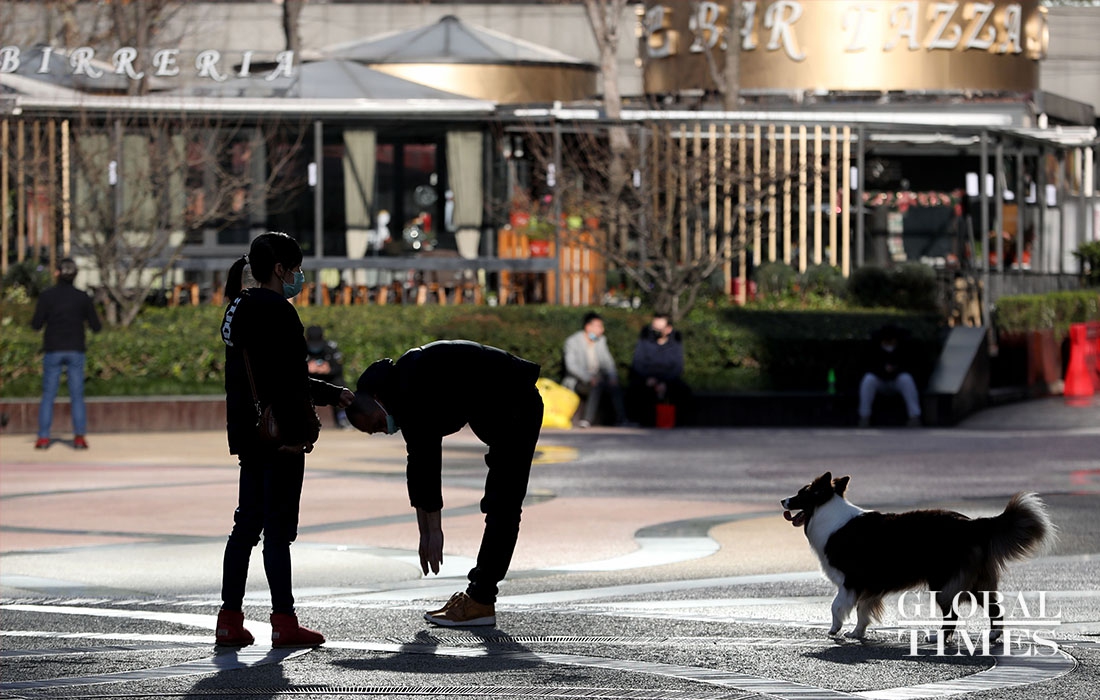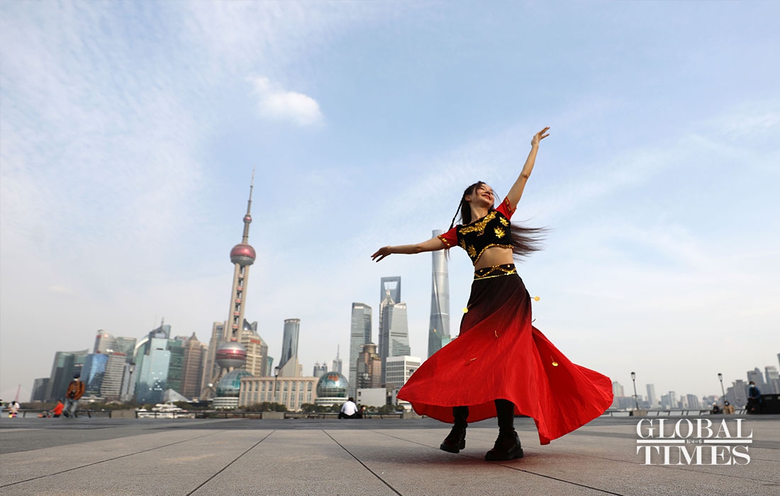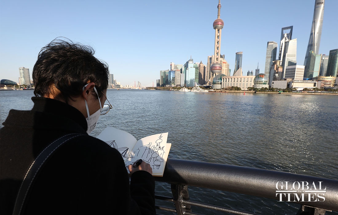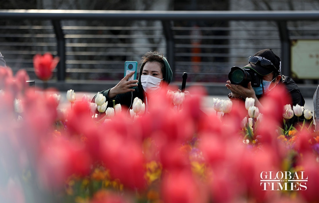 Temperature in Shanghai reached 20 degrees Celsius on Tuesday. Many visitors were seen strolling at the city's popular tourist spots like Nanjing West Road and The Bund in Shanghai. Residents took off their heavy winter coats and basked under the soothing sunshine. In some spacious public places, some people even took off their masks and danced to express their joy amid a refreshing gust of wind. (Photos: Yang Hui/GT)