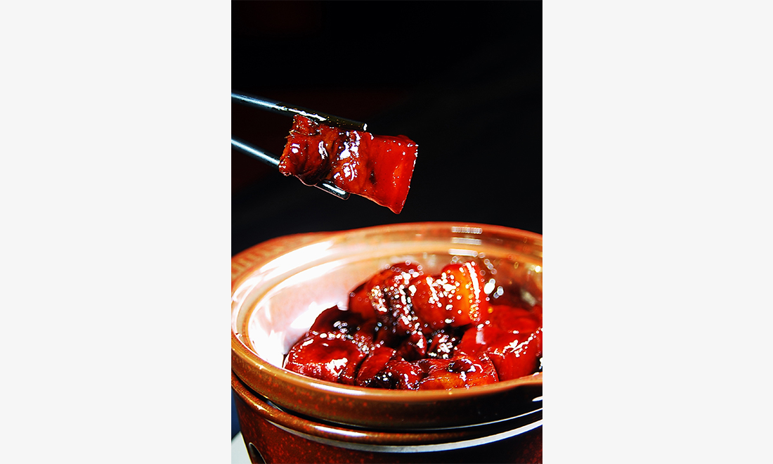 Dongpo pork, or Dongpo braised pork, is a traditional Zhejiang dish named after the famous poet and gastronome Su Dongpo of the Song Dynasty (960-1279). The pork is cut into 2-inch squares of both fat and lean meat with the skin left on. After pan-frying and red cooking (cooking with soy sauce), the dish takes on an oily appearance but is free from any greasy taste. Photo: CFP figcaption >