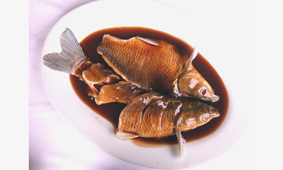 West Lake vinegar fish, one of the most popular Hangzhou dishes, is a grass carp cooked with vinegar and sweet sauce. Photo: IC figcaption >