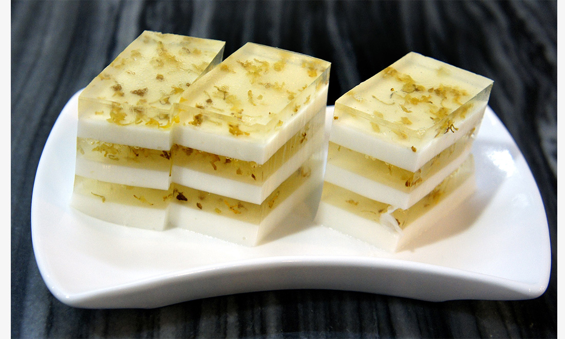 Osmanthus jelly has been a popular dessert for over 300 years. The jelly is primarily made from white sugar, glutinous rice flour and honey osmanthus. It not only has a crystal clear appearance, but also offers a sweet and refreshing taste. Photo: CFP figcaption >
