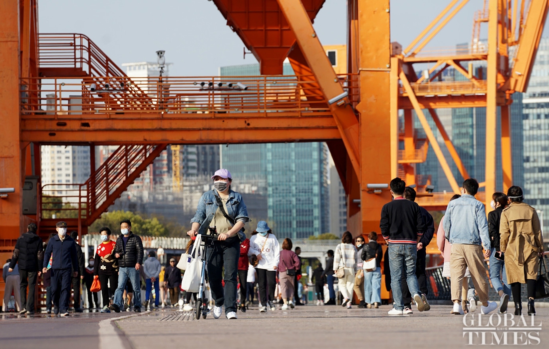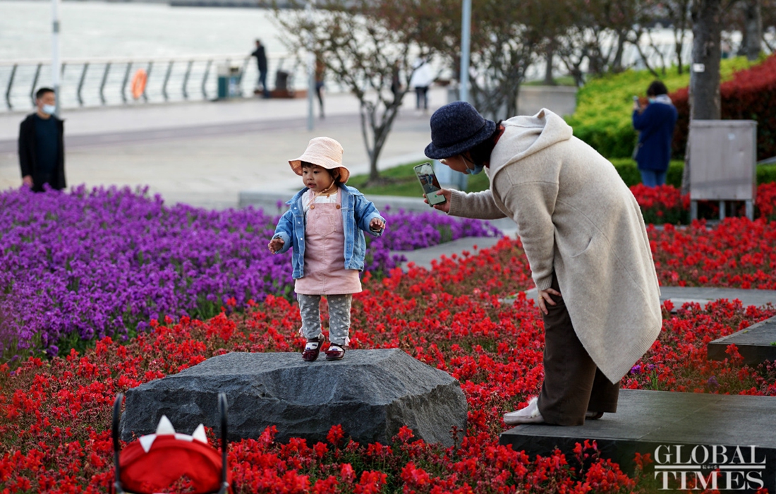 Shanghai's downtown riverside park vibrant amid Spring Equinox