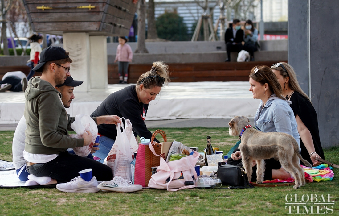 Citizens have fun at Shanghai's downtown Xuhui Riverside Park. Friday marks Spring Equinox or Vernal Equinox, when the sun is exactly at the celestial latitude of zero degrees. Spring has arrived, bringing hope to the city and its people.