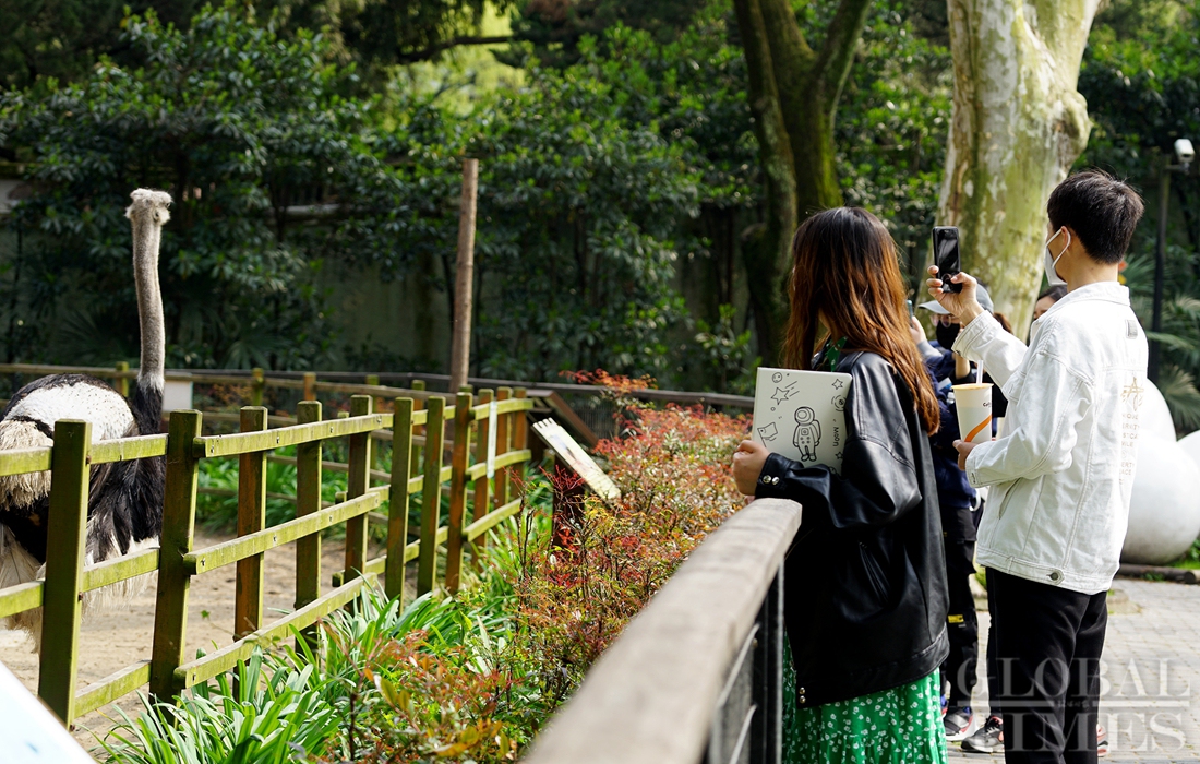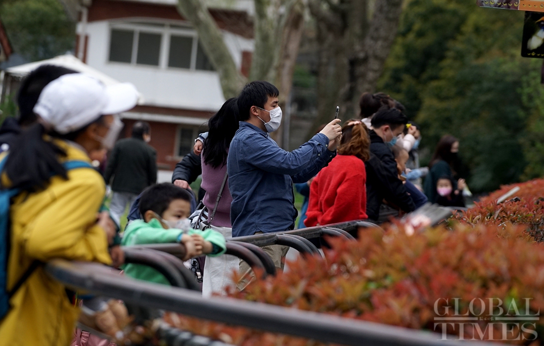 After being closed for over a month, the Shanghai Zoo was up and running over the weekend, when spring flowers were in full bloom. The zoo has since implemented risk prevention measures to ensure visitor safety.Photos: Chen Xia/GT