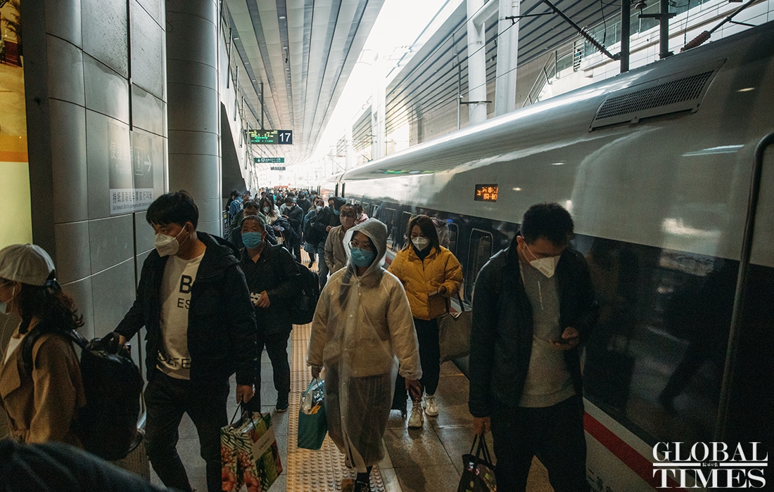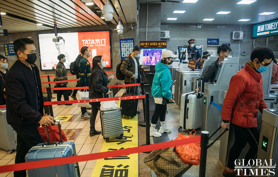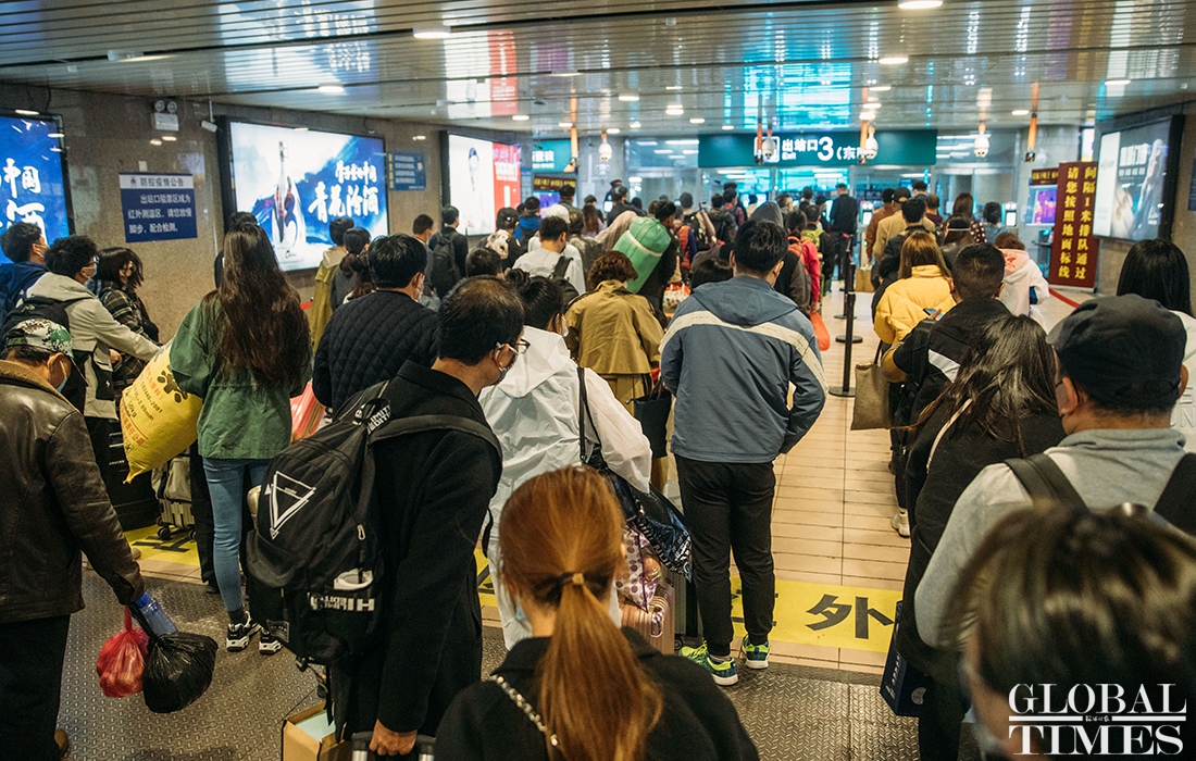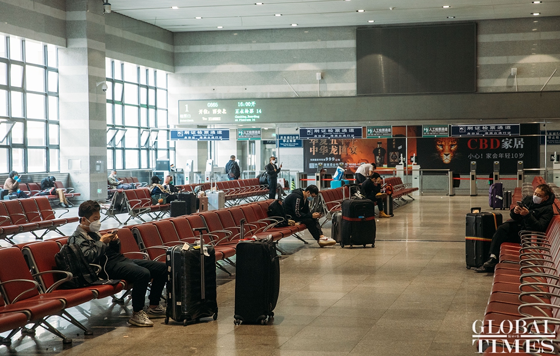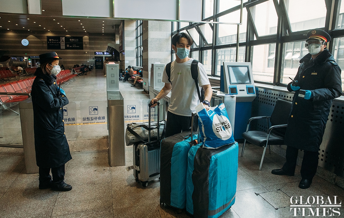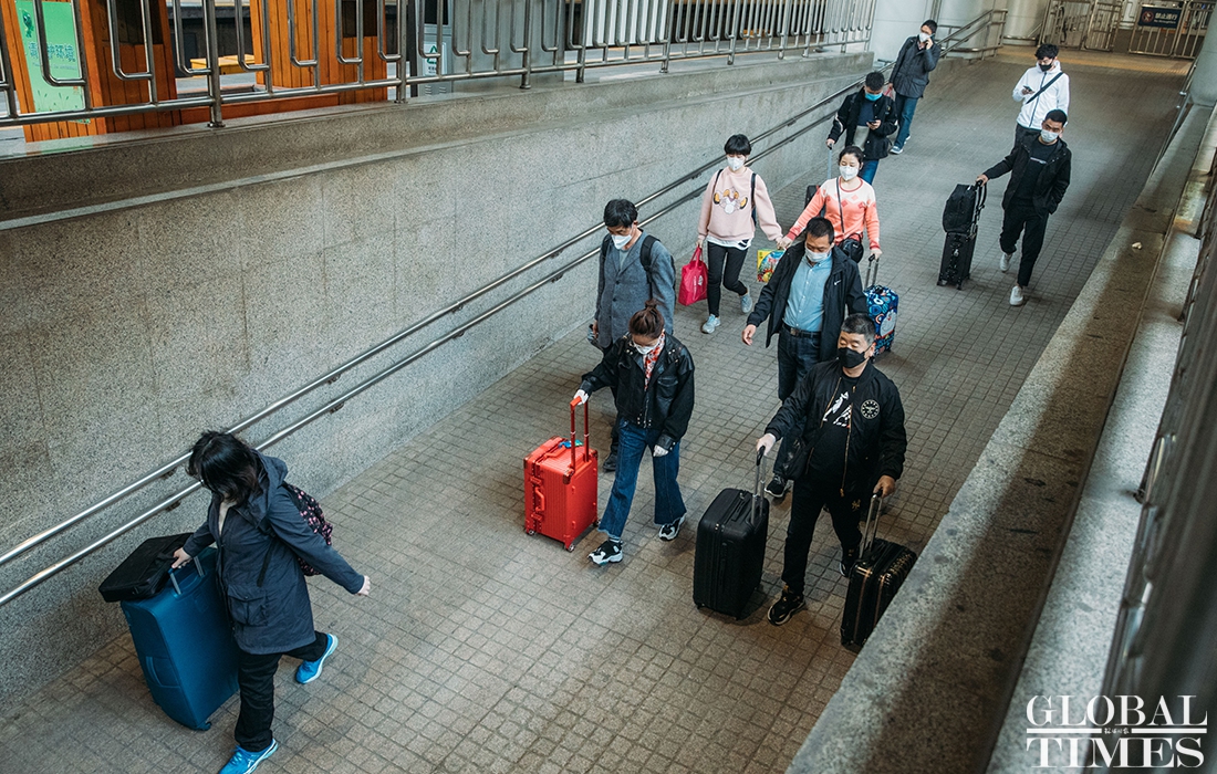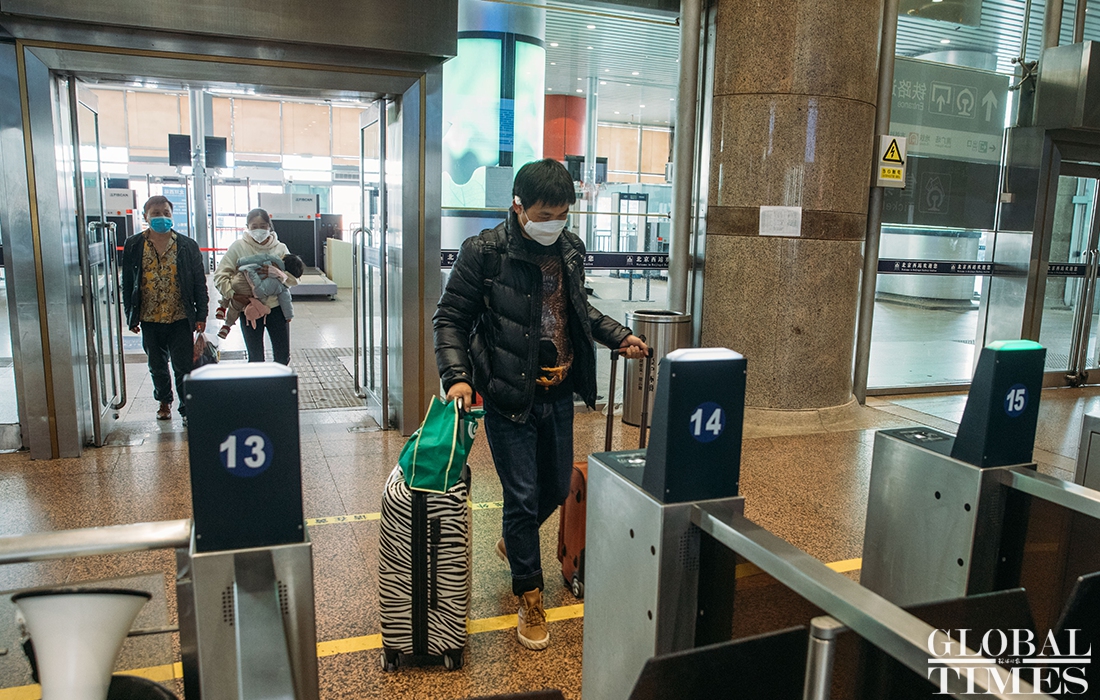Overseas arrivals transit in Beijing railway station