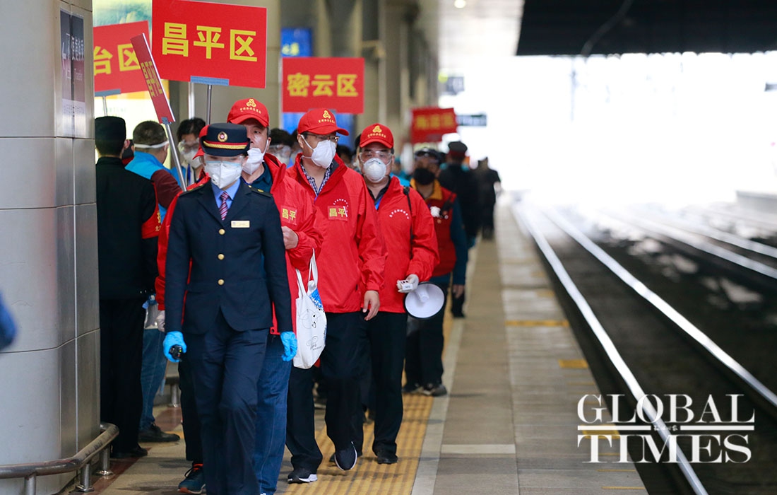 Special bullet trains slowly approached the Beijing West Railway Station Wednesday afternoon, bringing back more than 800 passengers, including more than 200 who have been stuck in Hubei for almost two months due to COVID-19.